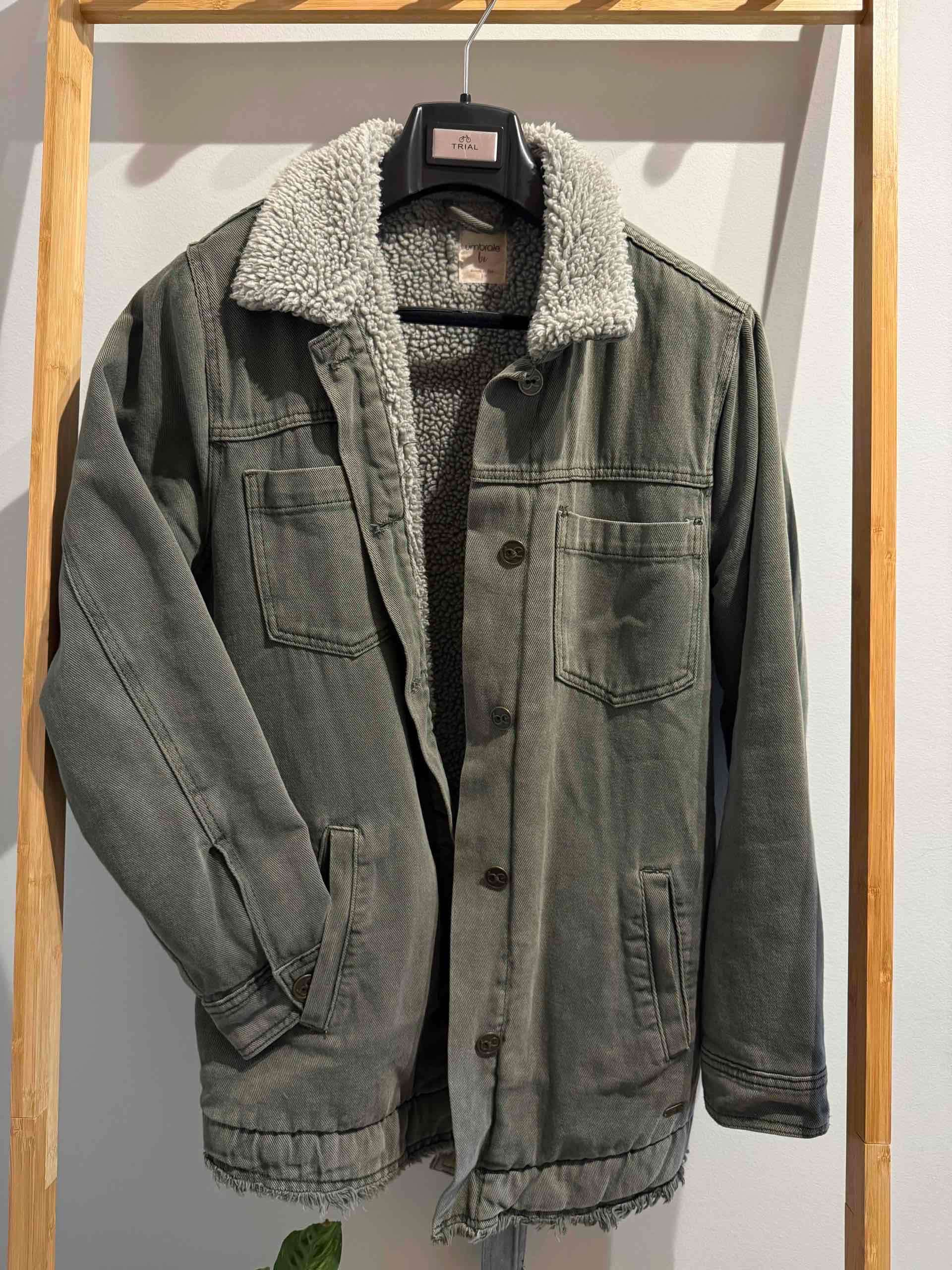 Chaqueta Umbrale talla L en color verde, perfecta para el invierno, tipo mezclillacon forro de corderito en interior. Buen estado.