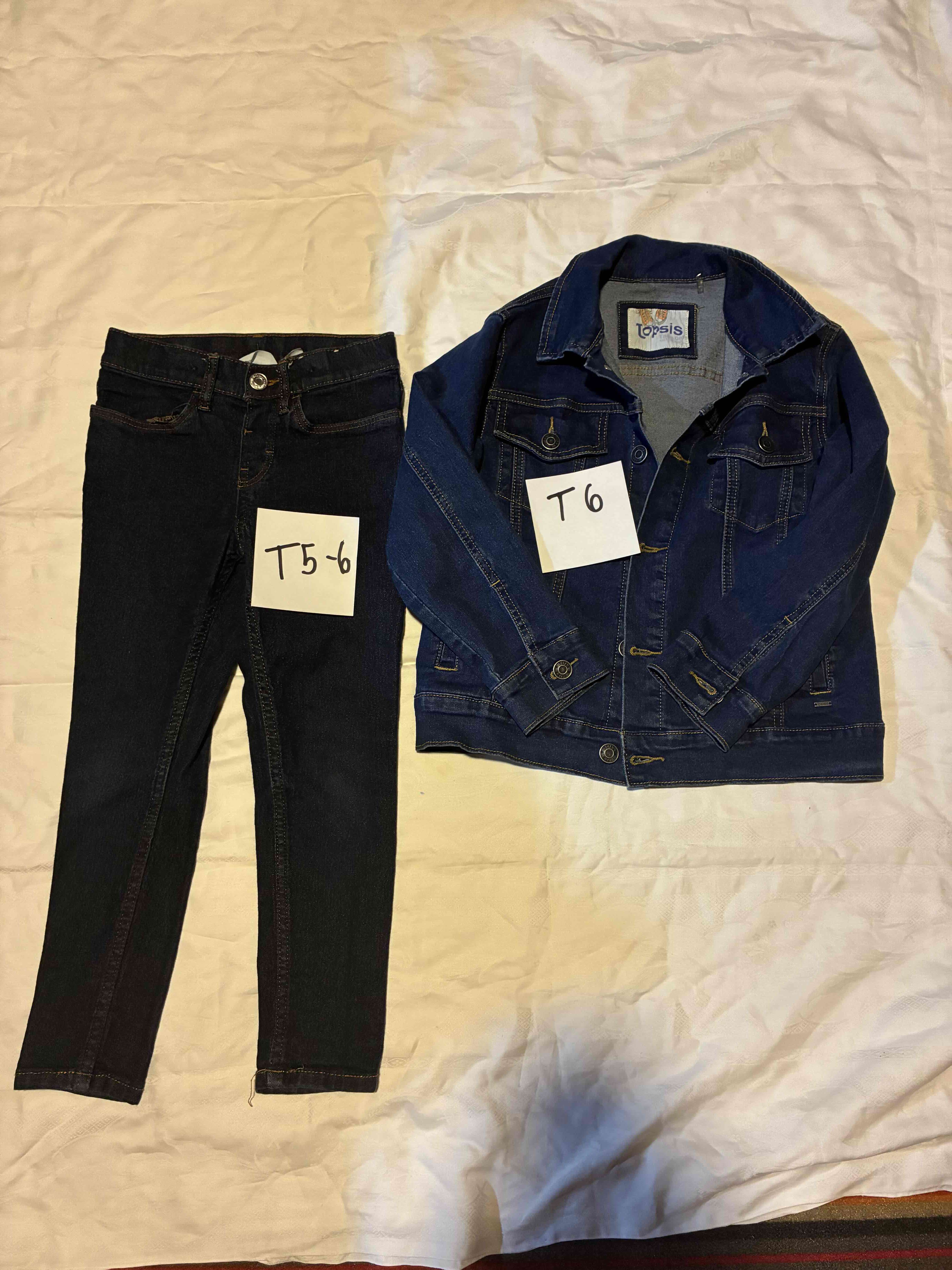 Conjunto de chaqueta y pantalones de mezclilla para niño, talla 6. Perfecto para un look casual. Jeans talla 5-6 Chaqueta talla 6 En perfecto estado