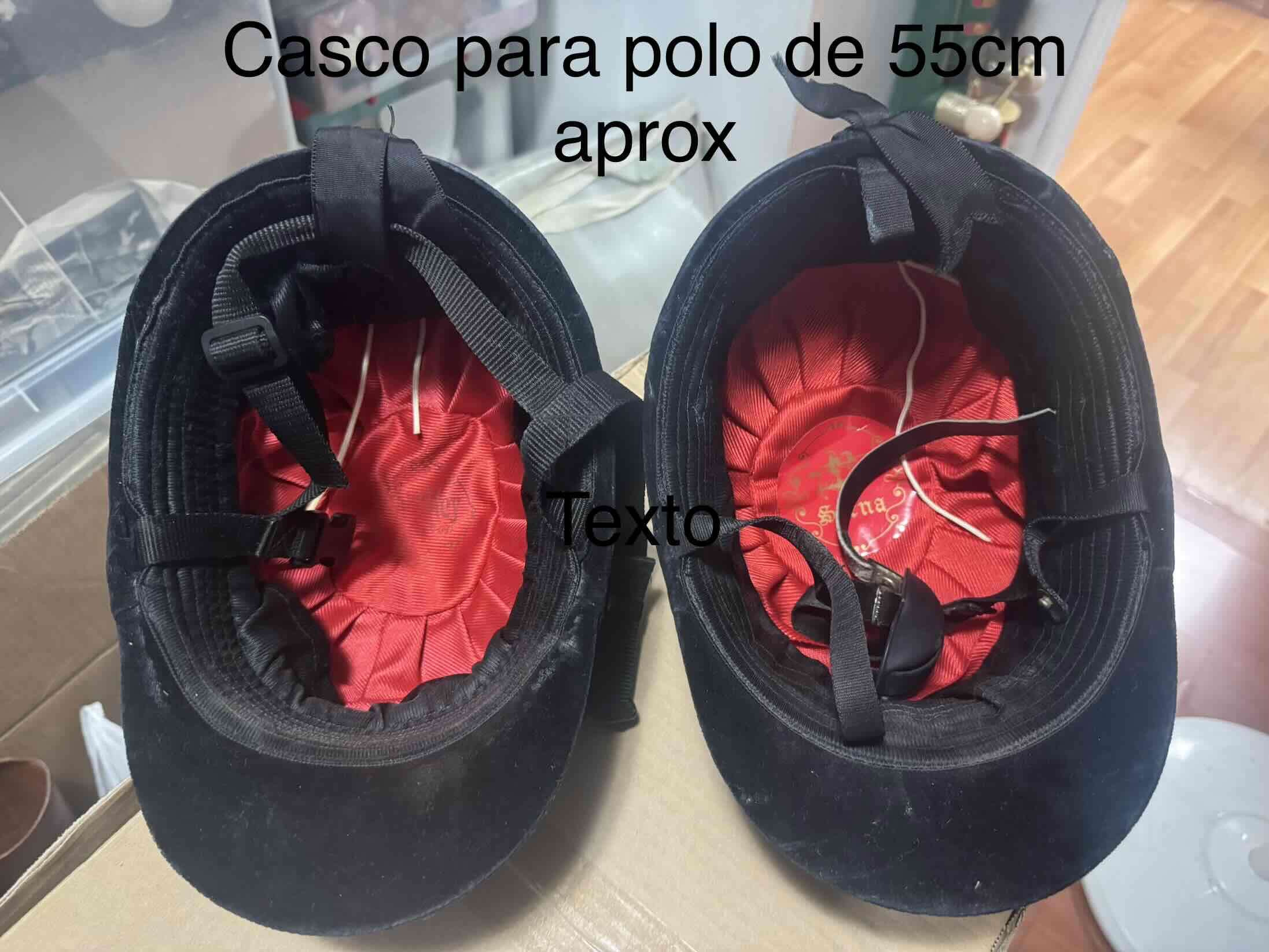 Casco de polo en buen estado, estilo clásico y cómodo. Ideal para uso deportivo.60 mil los dos 55 cm aprox medida cabeza