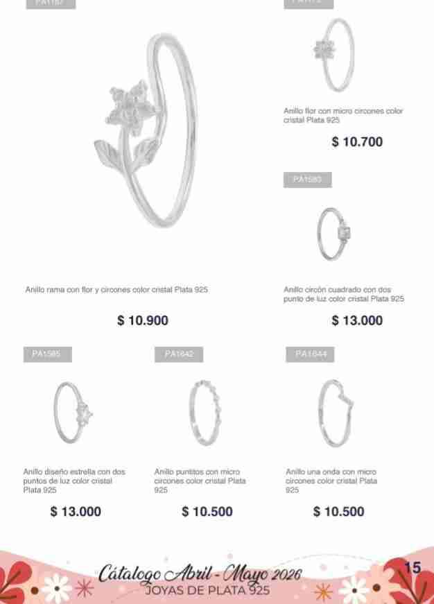 Elegante anillo de plata 925 con detalle de flor y circones color cristal. Ideal para ocasiones especiales.