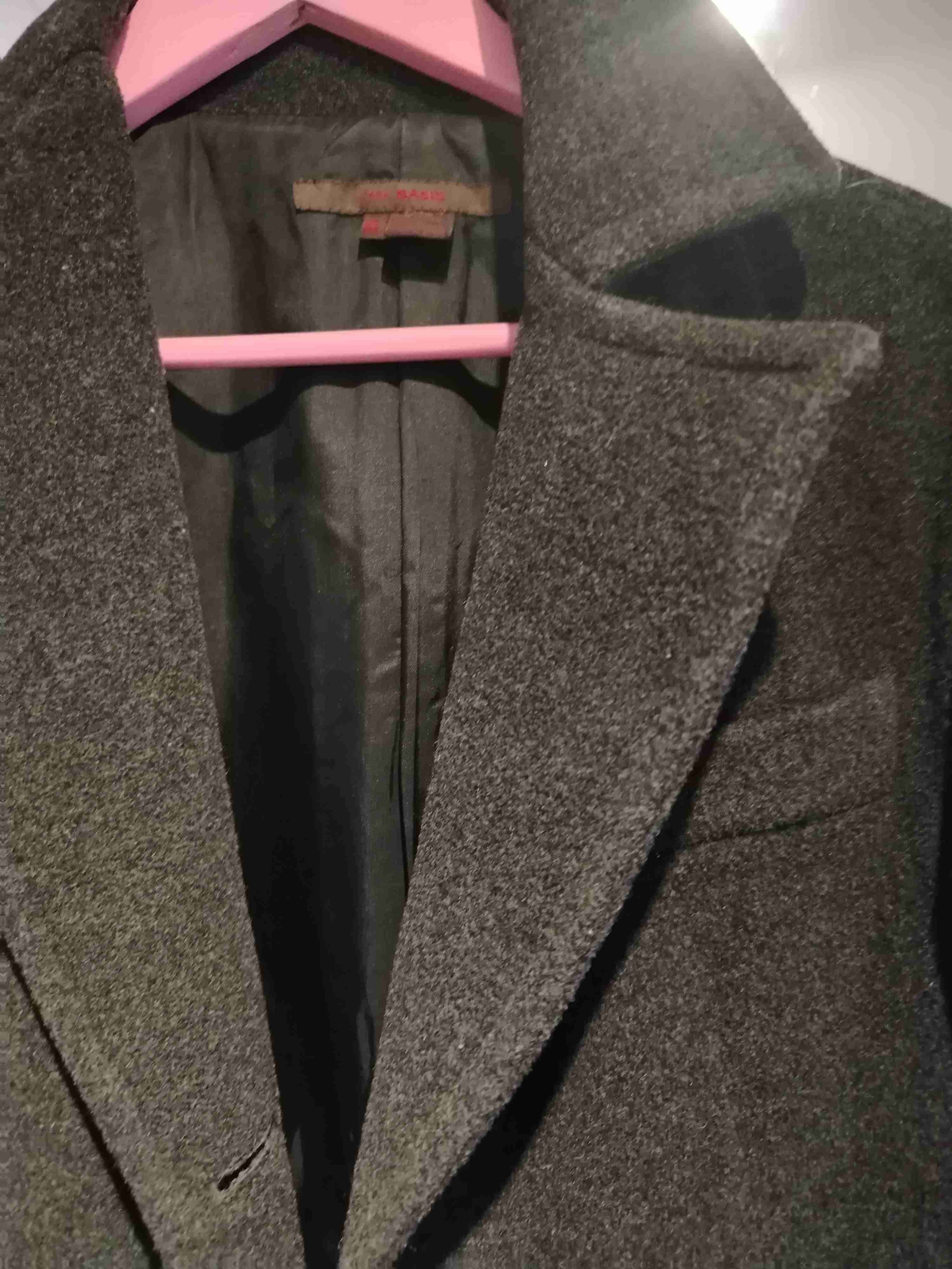 Abrigo elegante de lana gris oscuro, ideal para el invierno. En buen estado, con signos leves de uso.