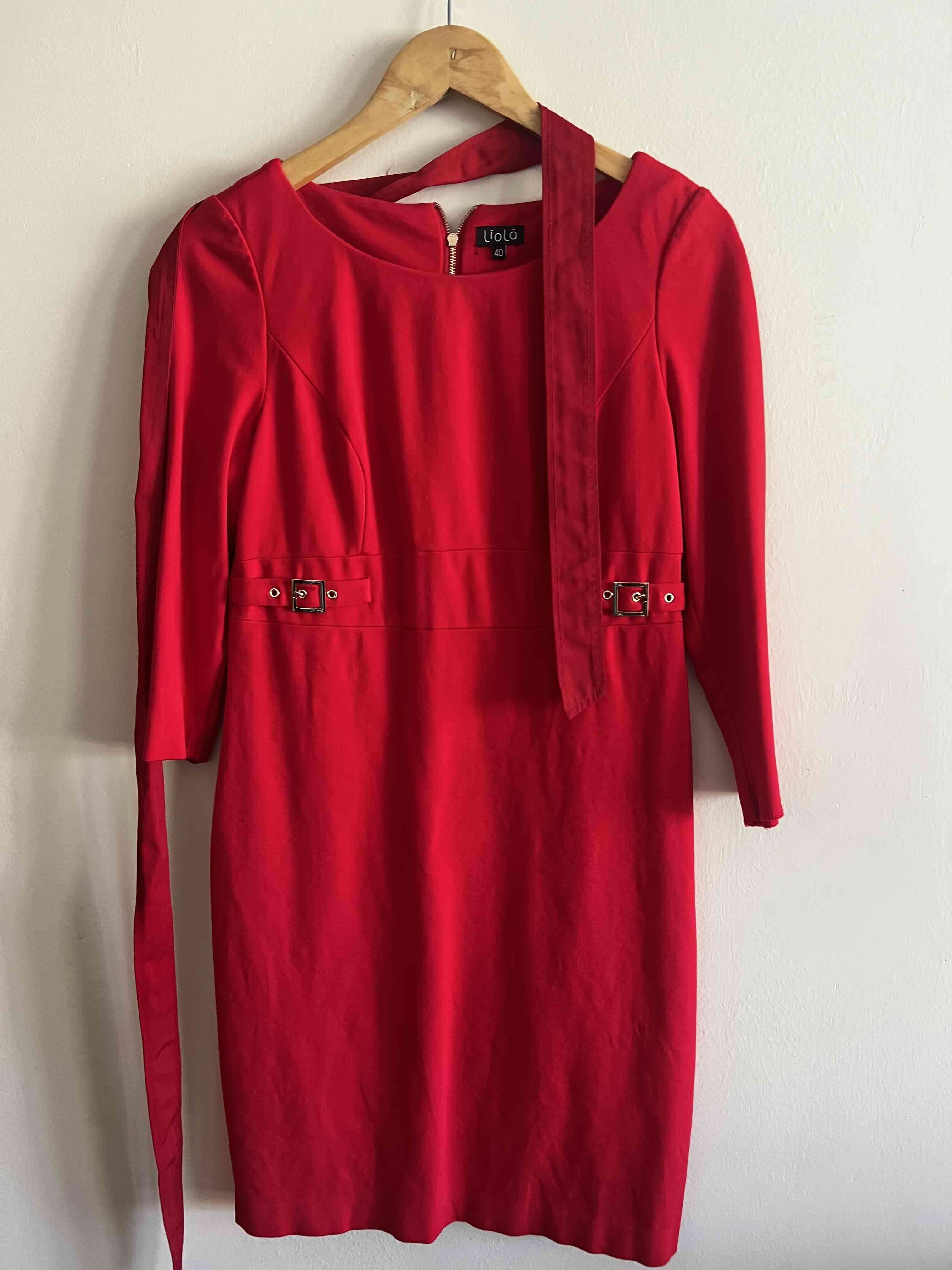 Elegante vestido rojo con cinturón incluido. Ideal para ocasiones especiales, en buen estado.