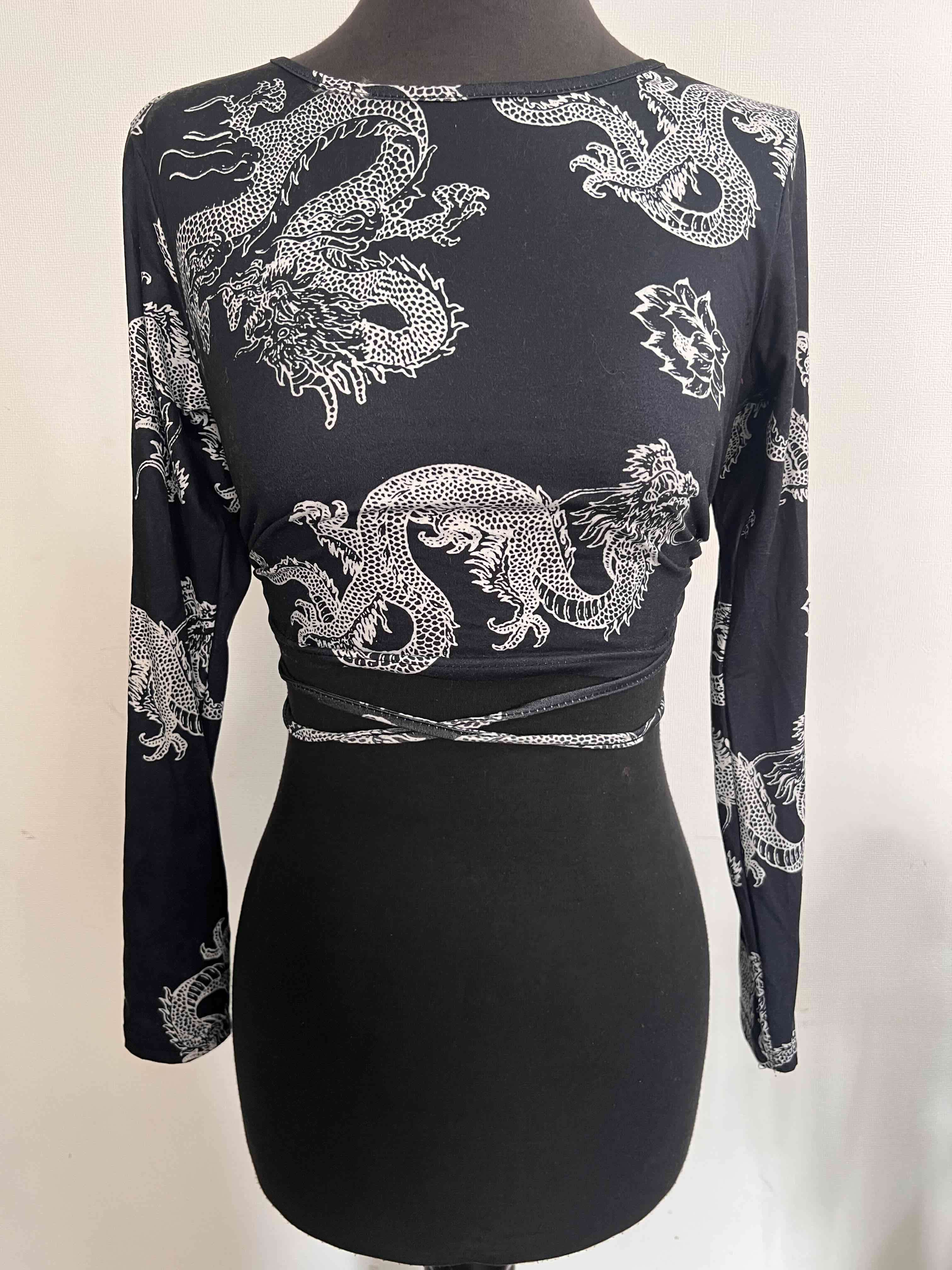 Polera negra estampado dragones