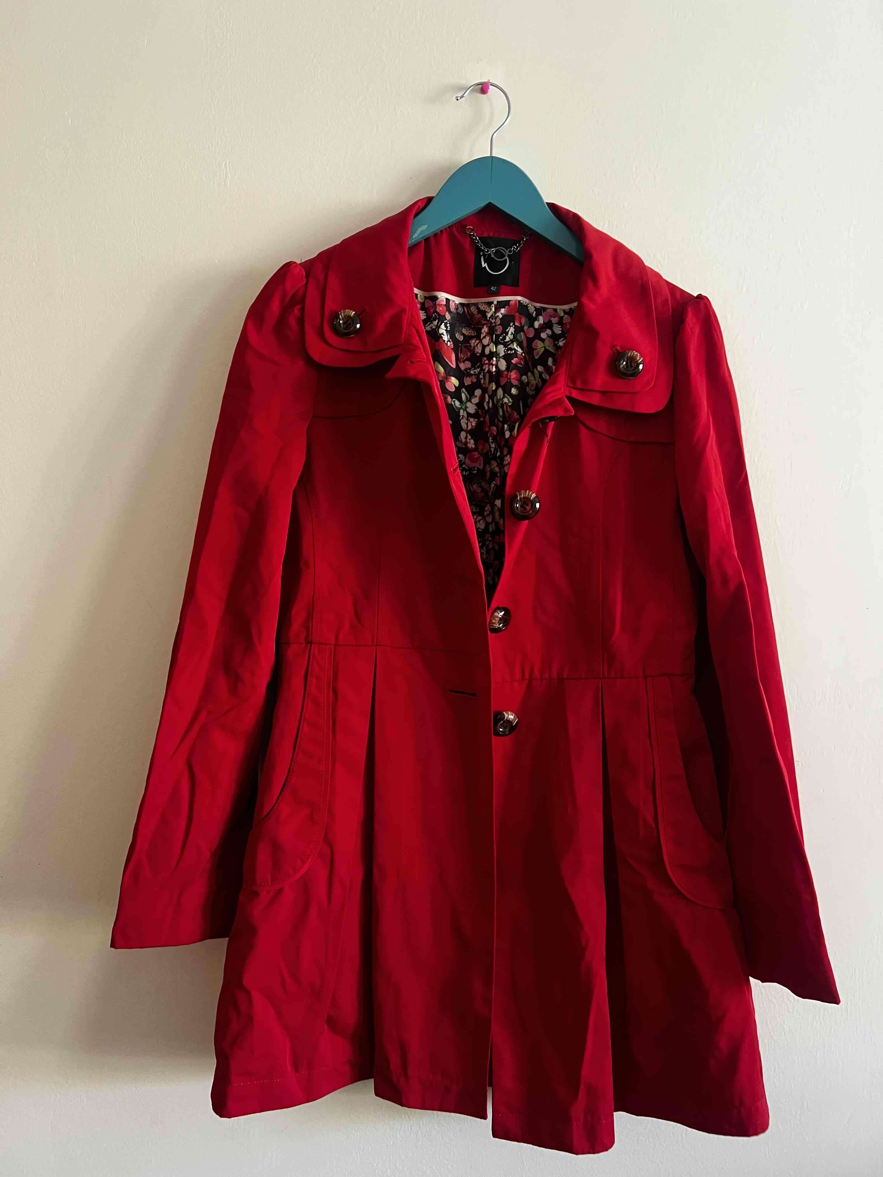 Abrigo rojo con diseño floral interior. Perfecto para el invierno, en buen estado.