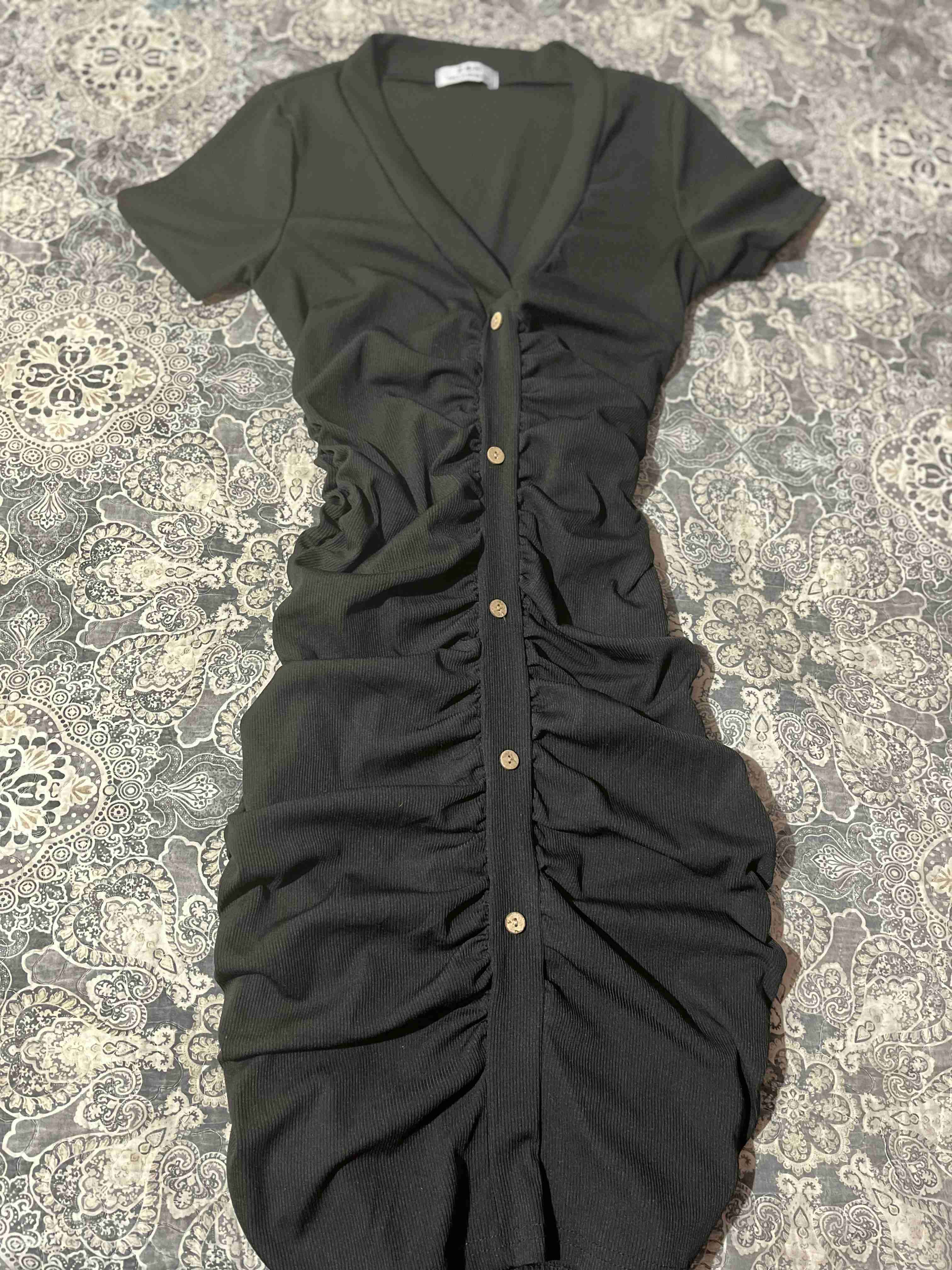 ♡Vestido negro ajustado de manga corta con detalles de fruncido y botones. Ideal para ocasiones casuales. Buen estado. ♡Polera negra talla 2XL a $2000 ♡Polera negra con encaje en el cuello $2000 ♡Enterito rojo talla s-m $2000 ♡Vestido gris standar $2000 ♡ Vestido negro con botones manga larga $2000