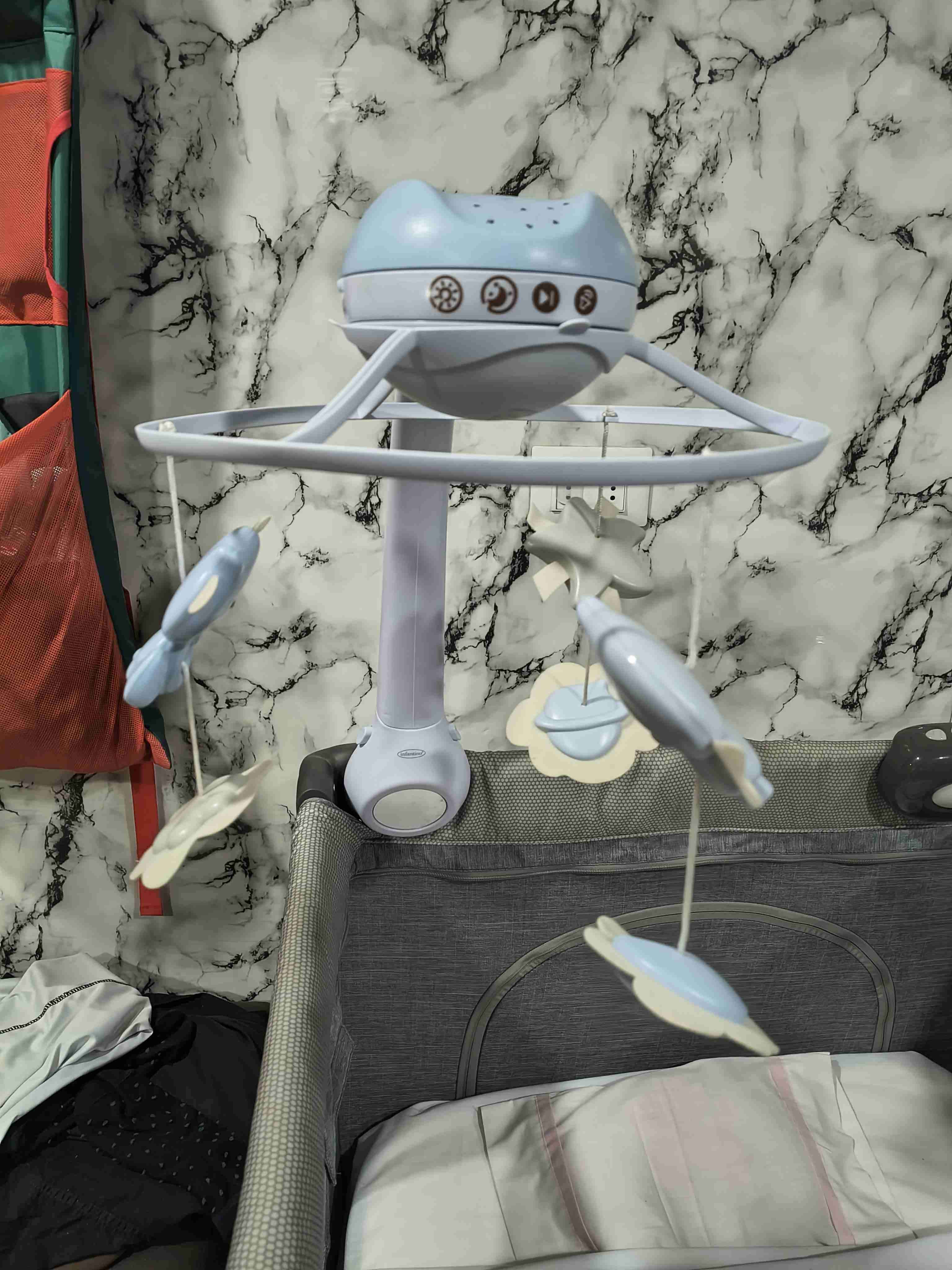 Móvil para cuna con música y luces. Ideal para distraer y calmar al bebé. En buen estado general.
