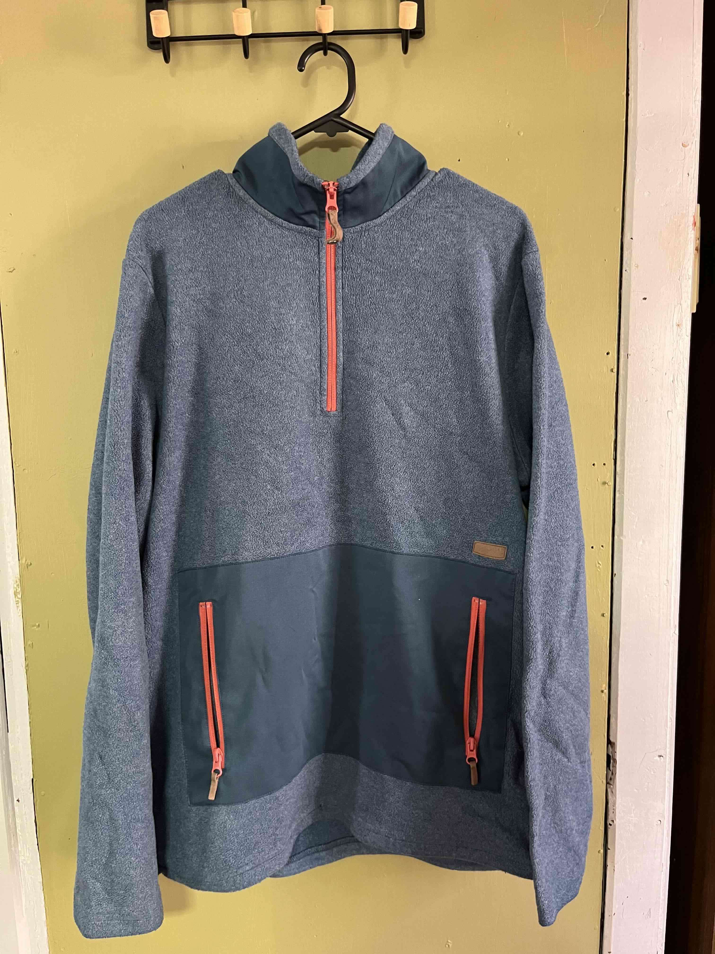 Cómodo polerón azul con cierre medio y bolsillos delanteros. Ideal para días fríos. En buen estado.