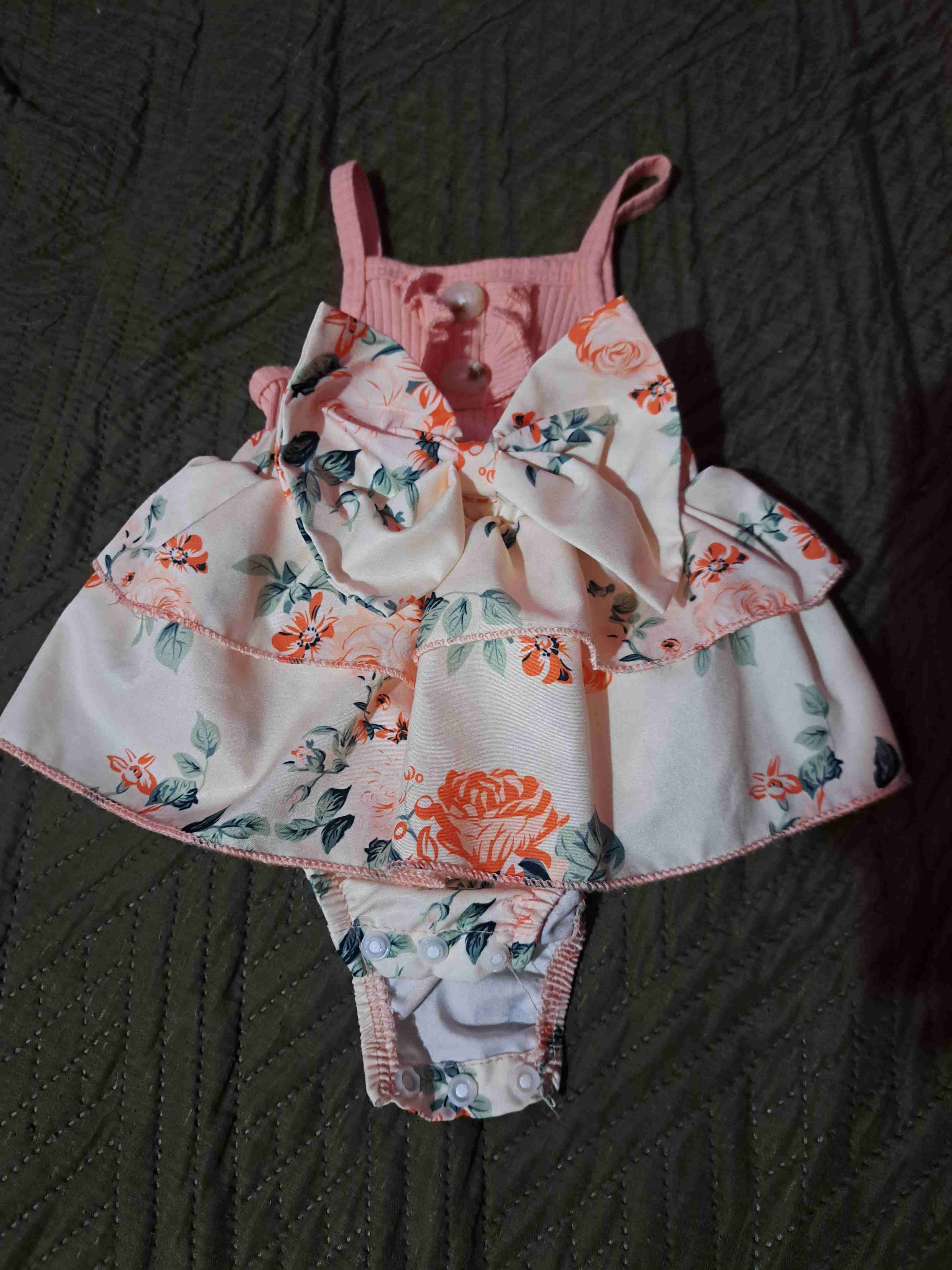 Hermoso vestido floral con tonos rosas y detalles en flores, perfecto para ocasiones especiales. En buen estado. Talla: 0-1 mes Lo vendo por qué a mi baby ya no le queda y lo uso muy poco apenas un par de veces está casi nuevo sin ningún detalle.