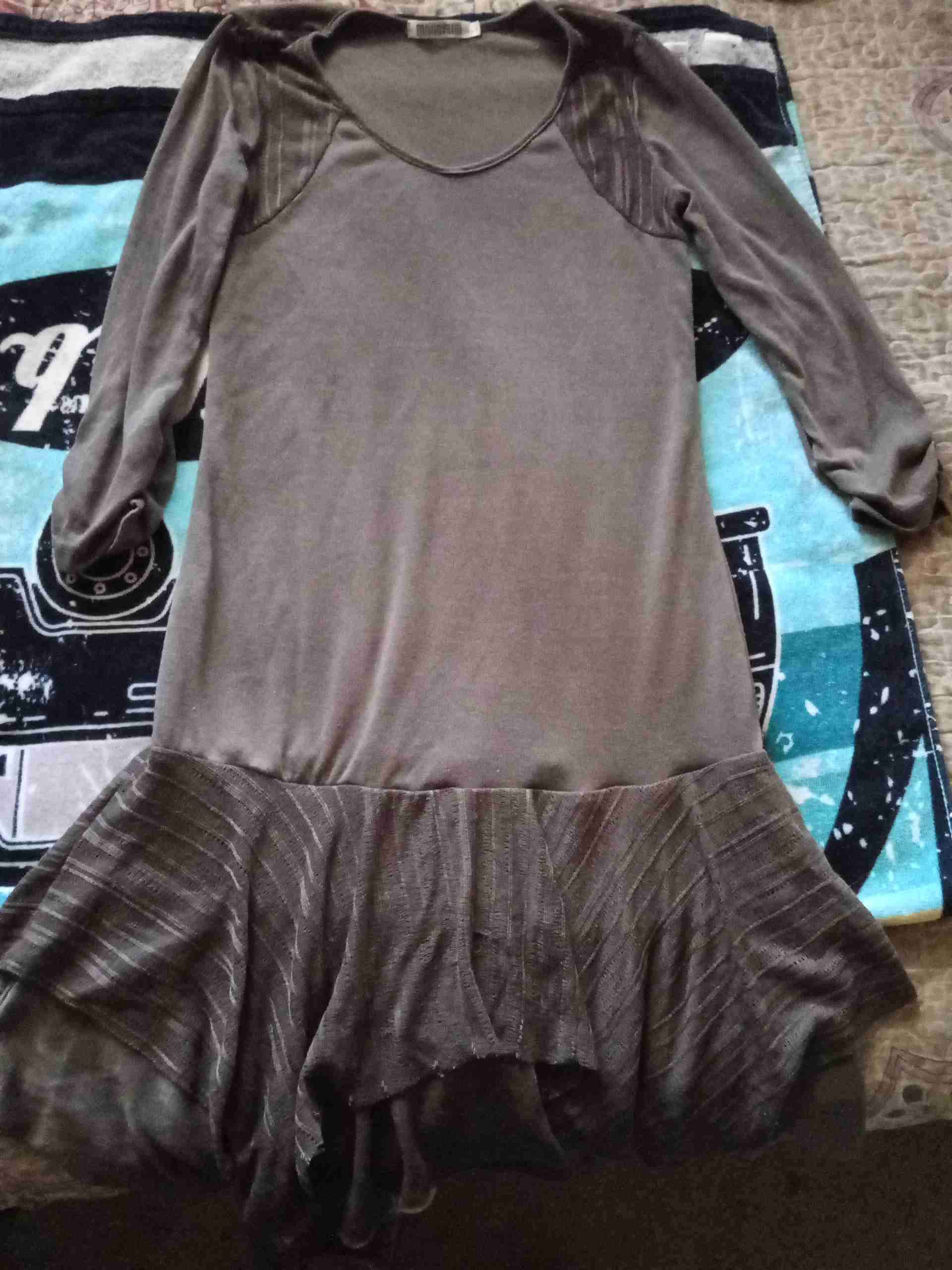 Vestido color gris con volantes en la falda. Ideal para ocasiones casuales. Buen estado general.