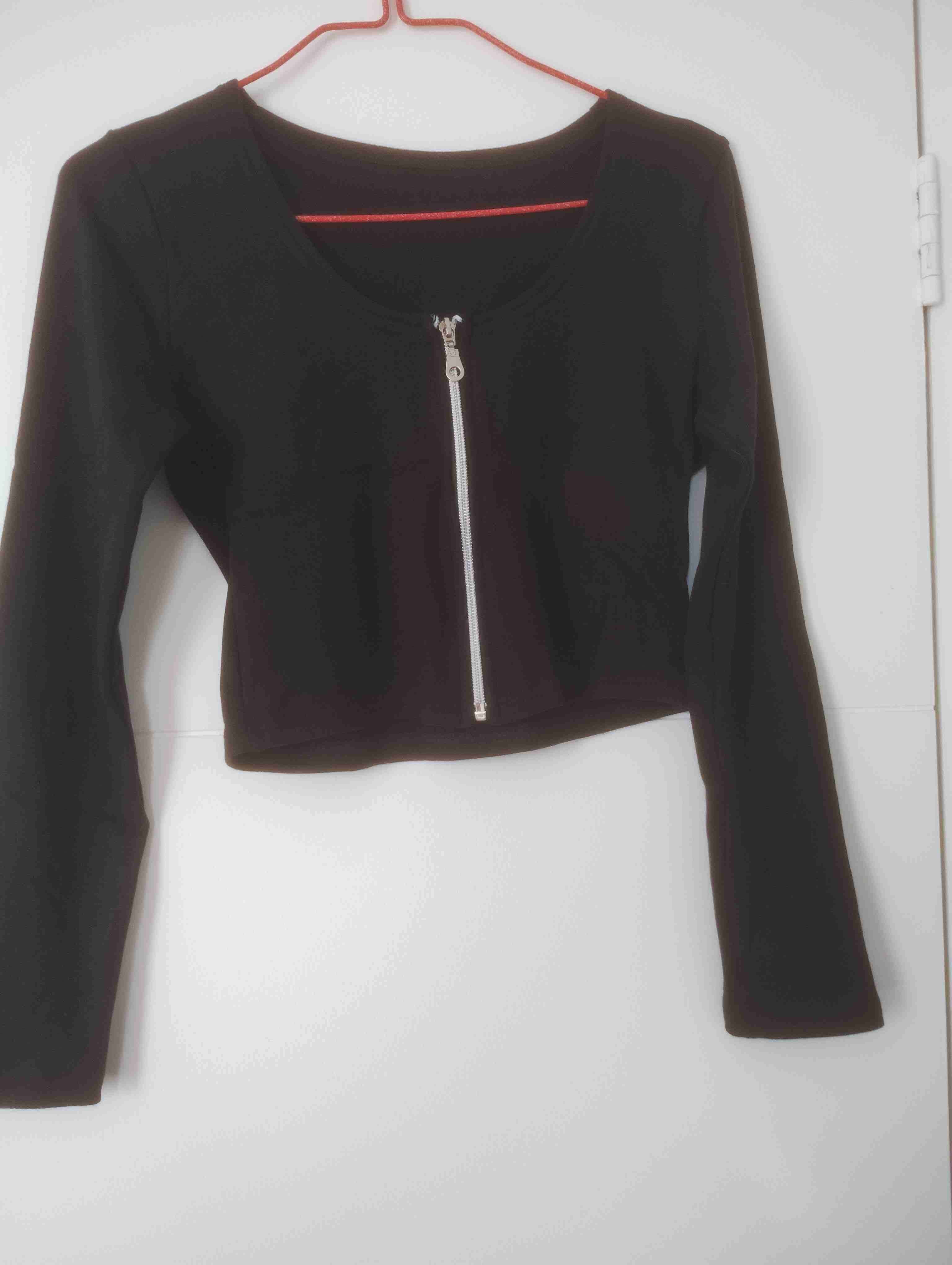 Polera negra con cierre frontal, ideal para un look casual. En buen estado.