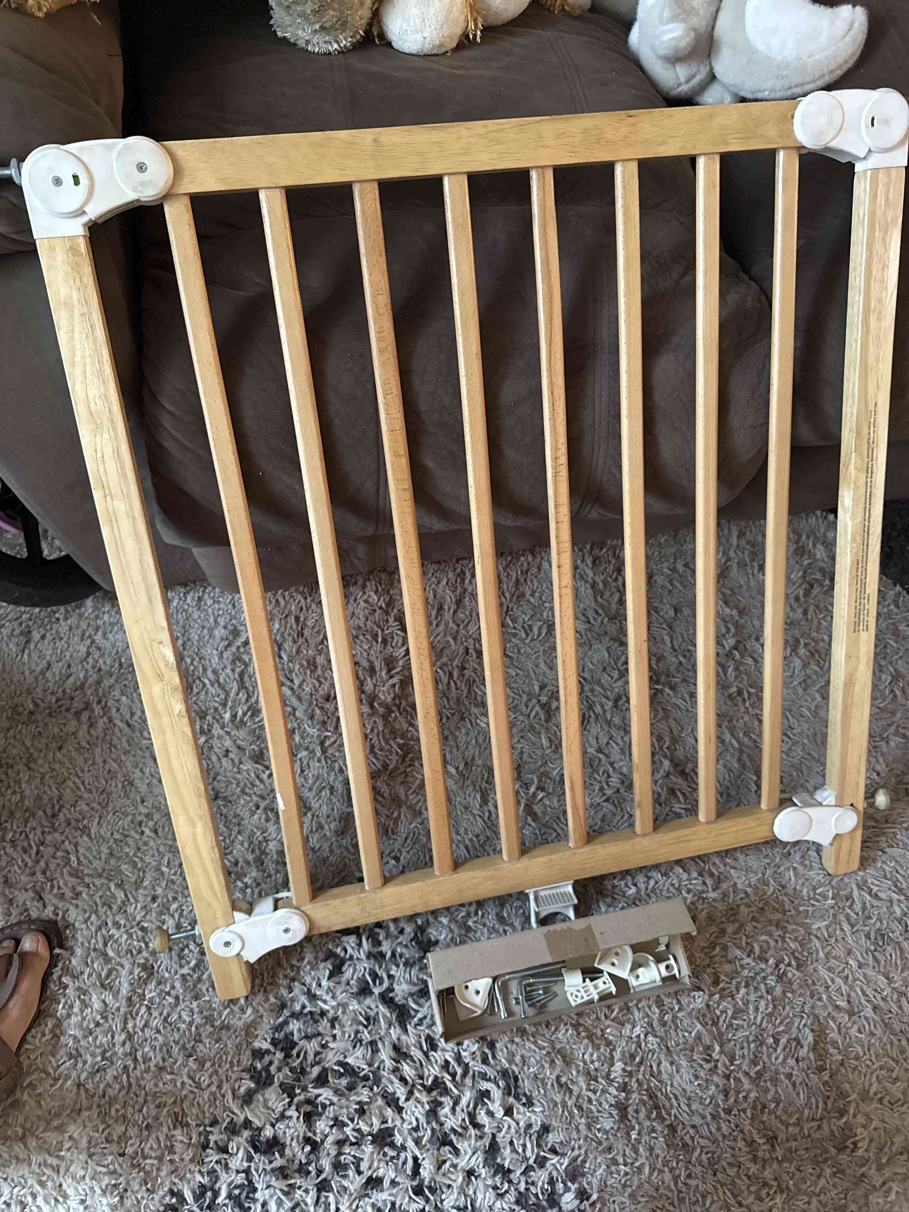 Reja de madera ajustable para seguridad de niños. Incluye piezas de montaje. En buen estado.