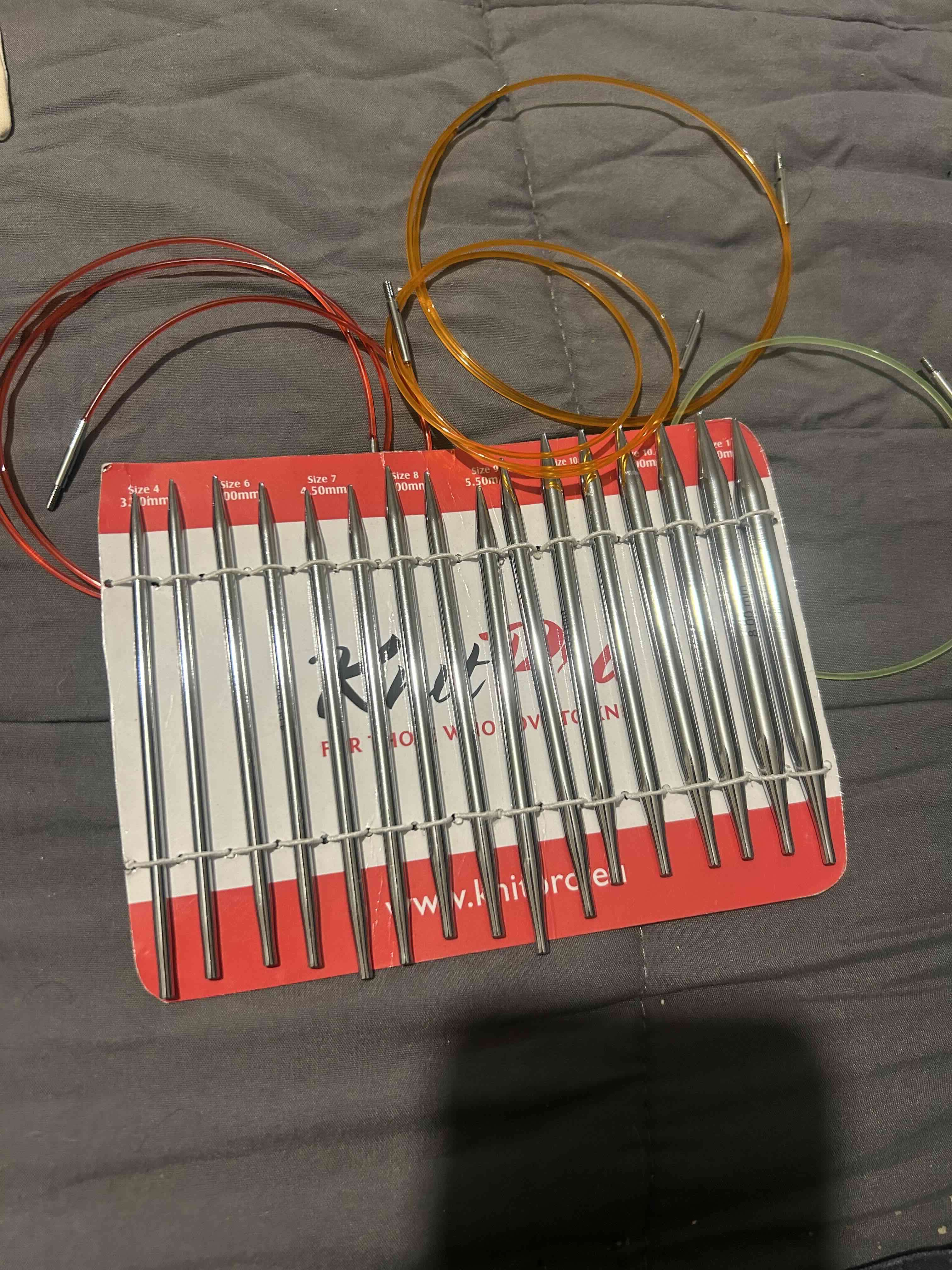 Conjunto de agujas circulares para tejer de diferentes tamaños. Perfecto para proyectos de tejido. Estado bueno, con algunos signos de uso.