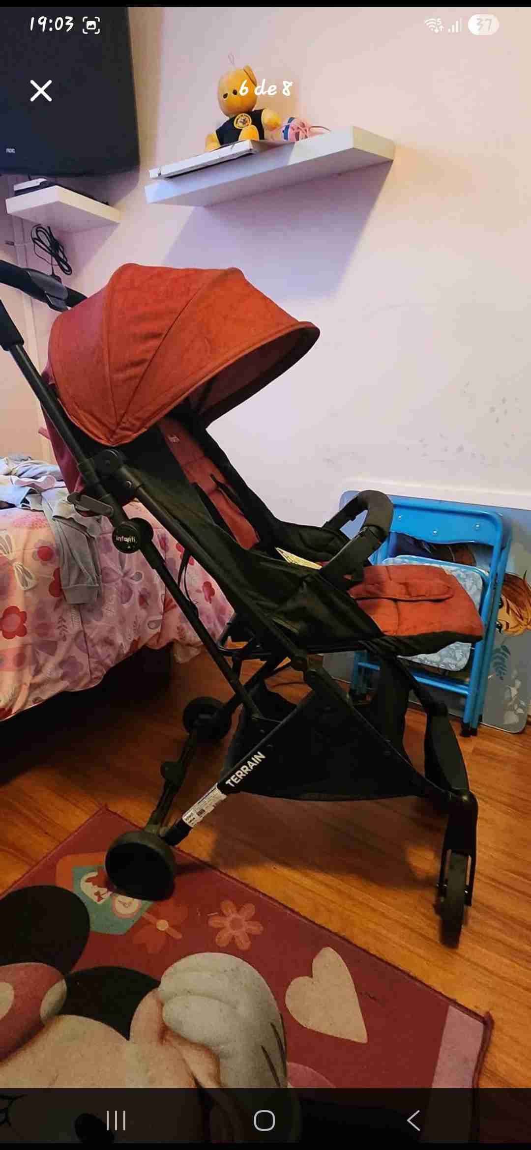 Cómodo coche de bebé en buen estado, ideal para paseos. Plegable y fácil de manejar.