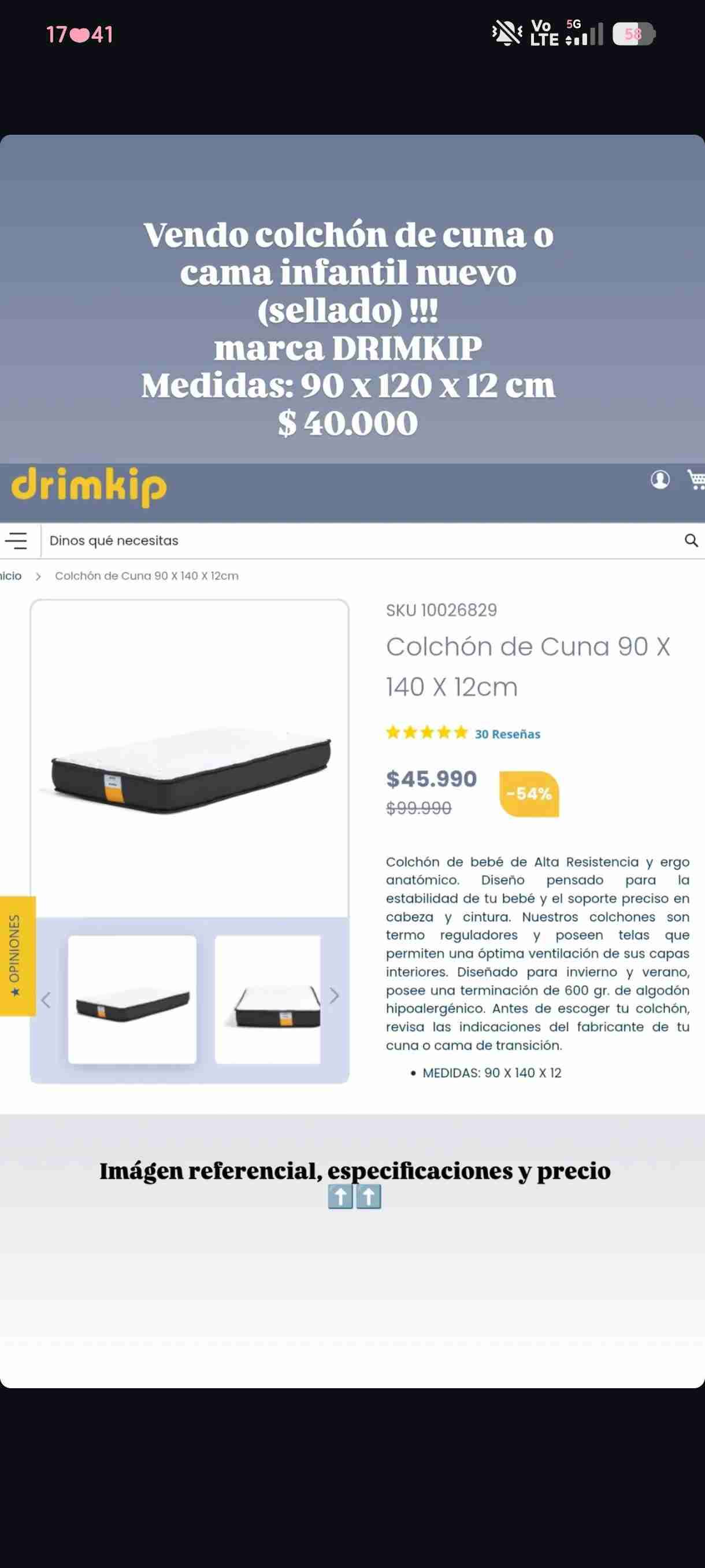 Colchón de cuna Drimkip nuevo y sellado. Ideal para estabilidad y soporte ergonómico del bebé. Medidas 90x140x12 cm.