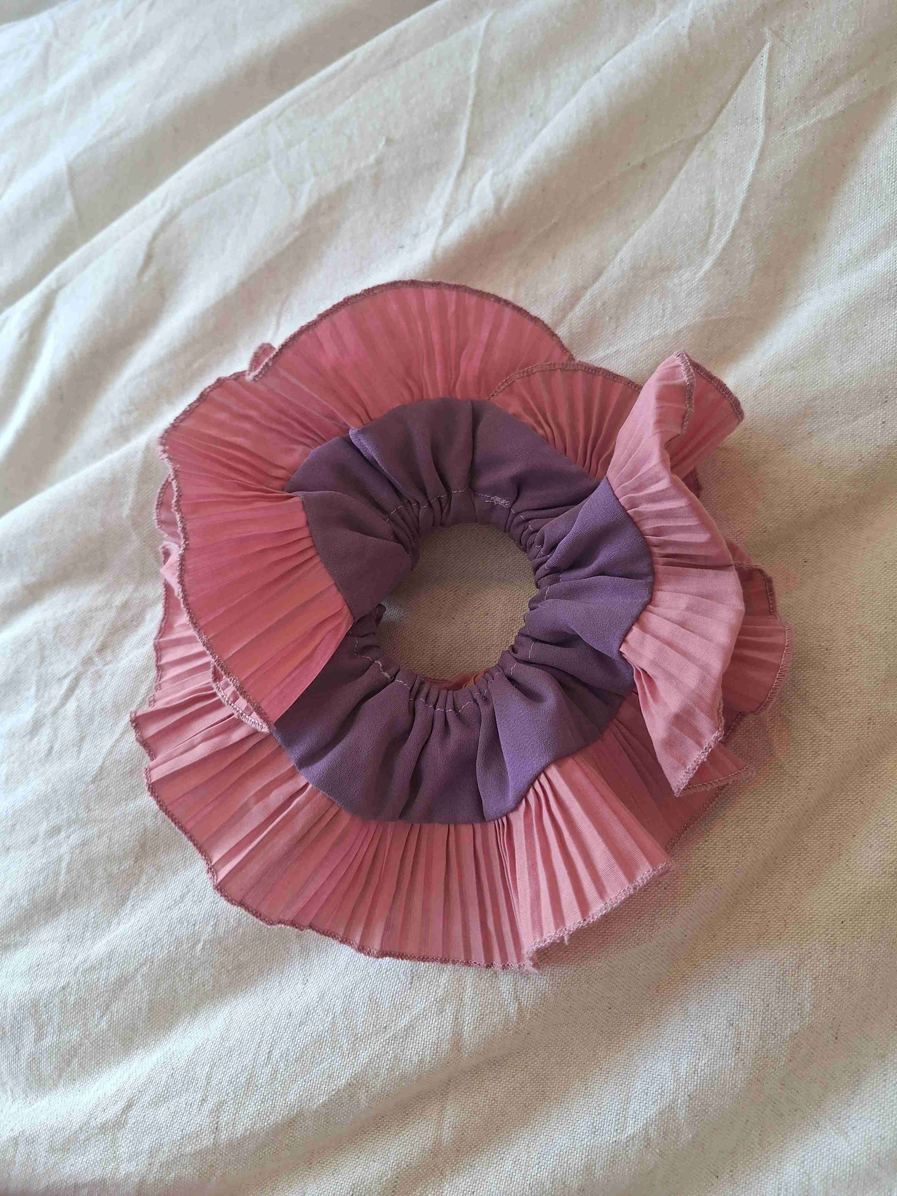 Elegante coletero con diseño plisado en tonos rosa y morado. Perfecto para complementar tu look diario.