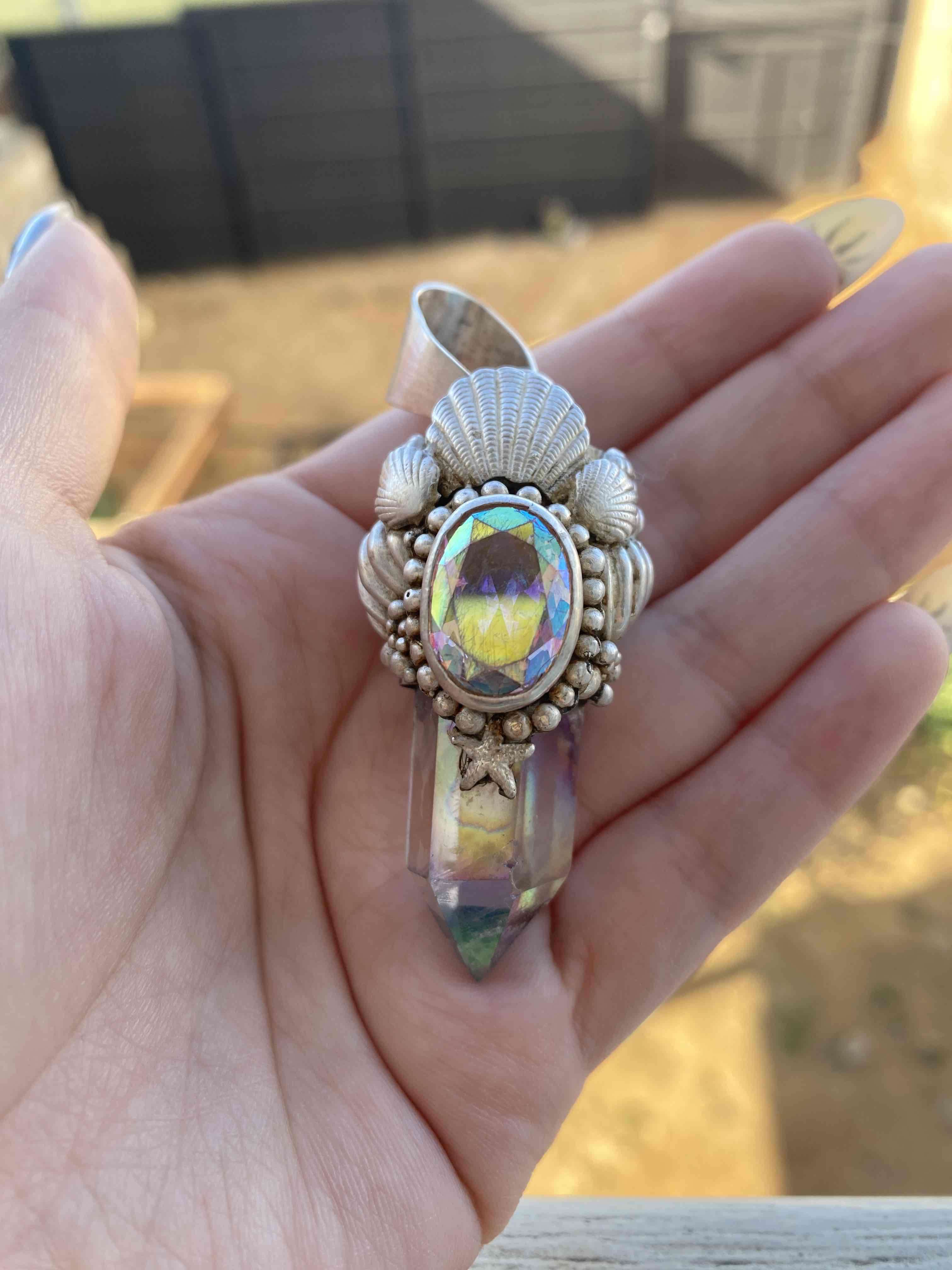 Elegante colgante con detalle de conchas, perfecto para ocasiones especiales. En buen estado. Viene con una cadena de plata 925 de regalo.