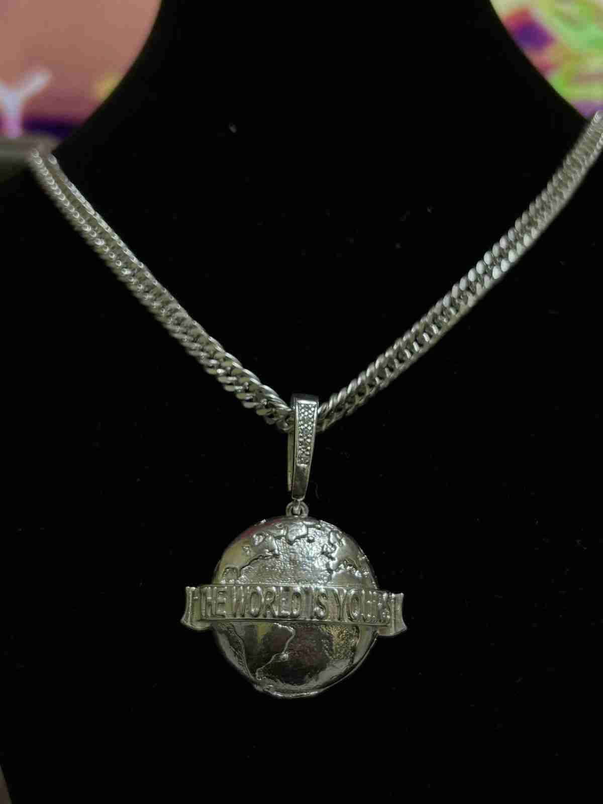 Elegante collar con colgante de globo terráqueo. Ideal para complementar tu estilo con un toque único.