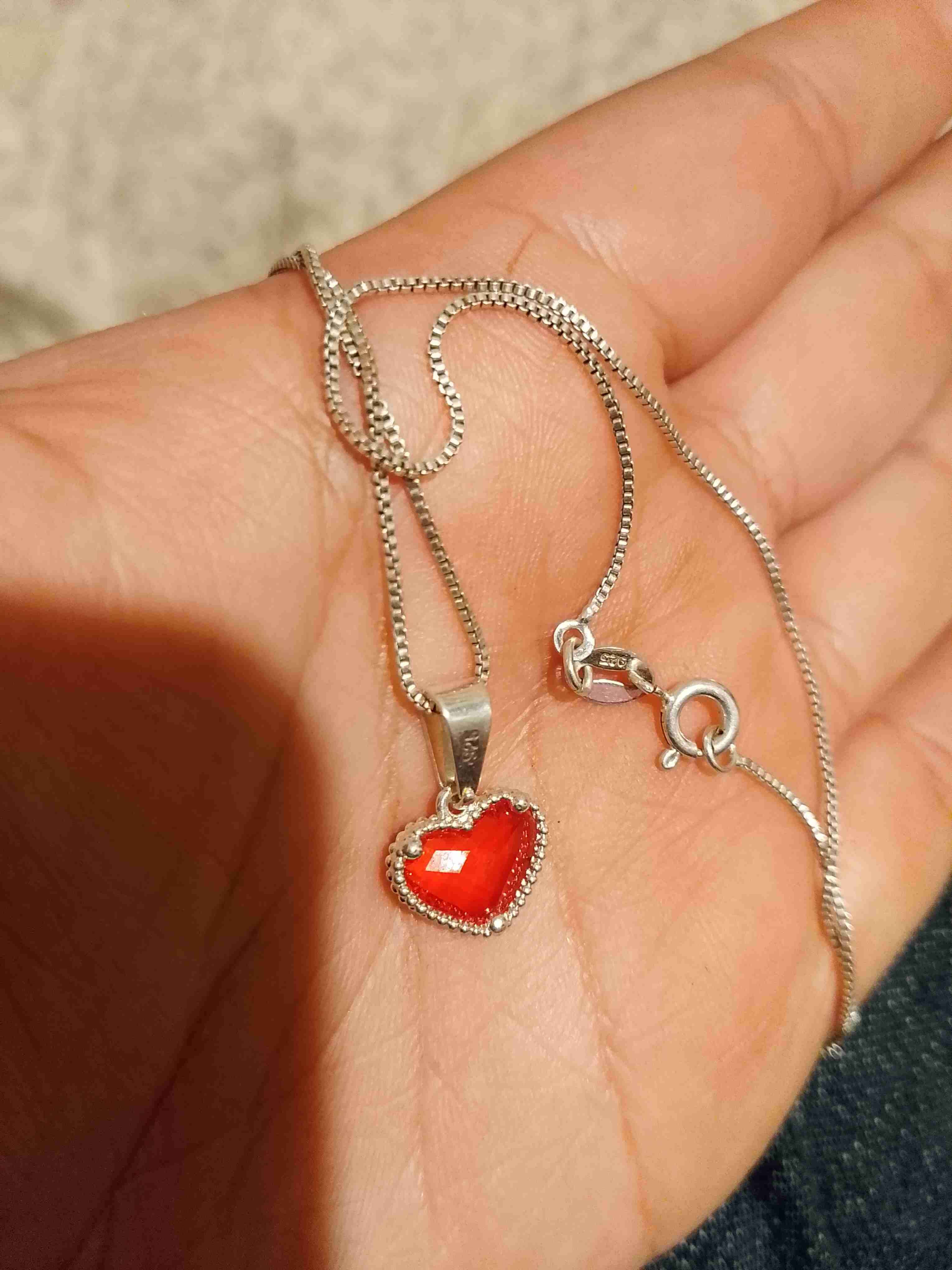Elegante collar con un dije de corazón rojo,En buen estado pues está nuevo, plata 925 se ven los sellos