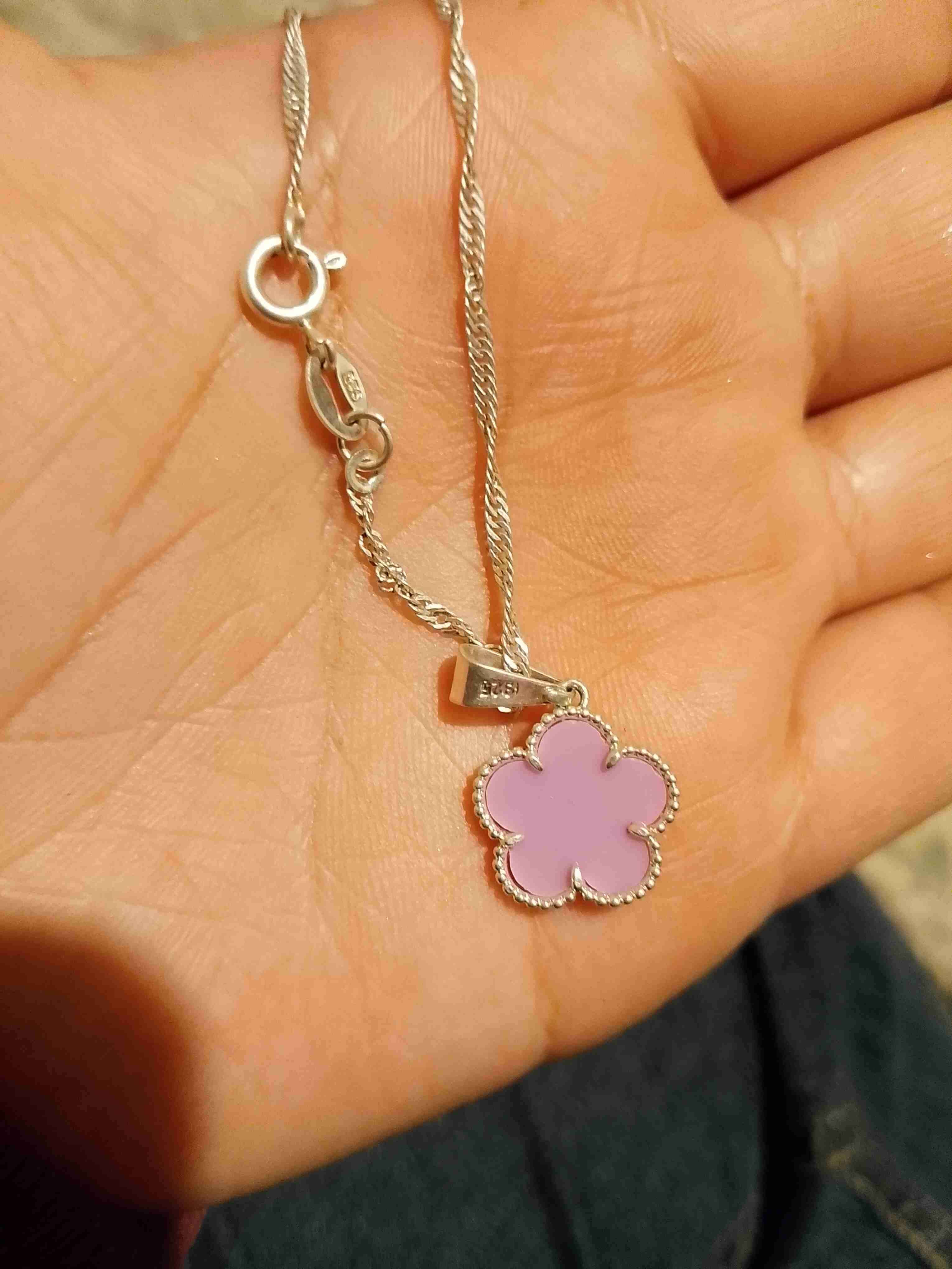 Collar de plata con dije de flor rosada. Ideal para uso diario o eventos especiales, ahí se ven los sellos 925, sin uso.