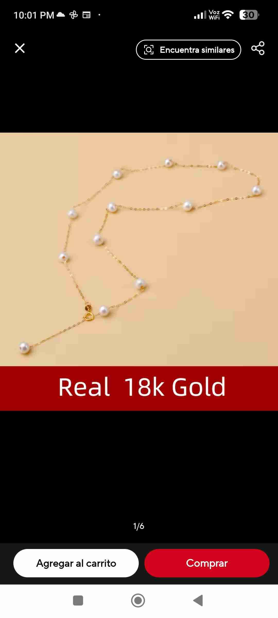 Elegante collar de perlas en oro 18k, ideal para ocasiones especiales. En excelente estado, diseño simple y sofisticado. Perlas cultivadas de 5 mm.cada una