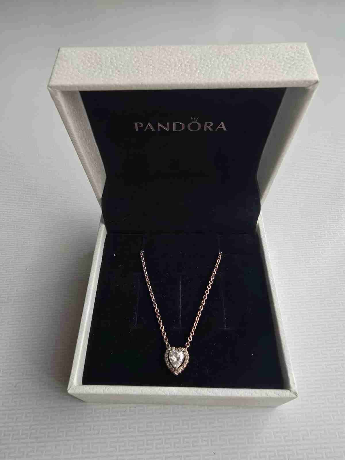 Elegante collar Pandora con dije en forma de corazón. Ideal para ocasiones especiales, viene en su caja original.