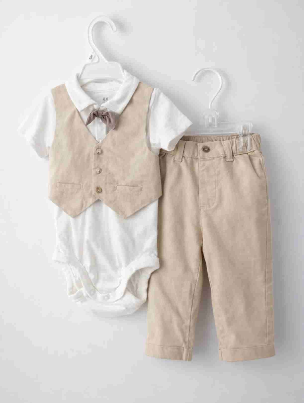 Elegante conjunto de bebé con chaleco beige, perfecto para ocasiones especiales. Incluye un body blanco con pantalón a juego. Estado impecable NUEVO No se ocupo porque mis hijas fueron niñas.