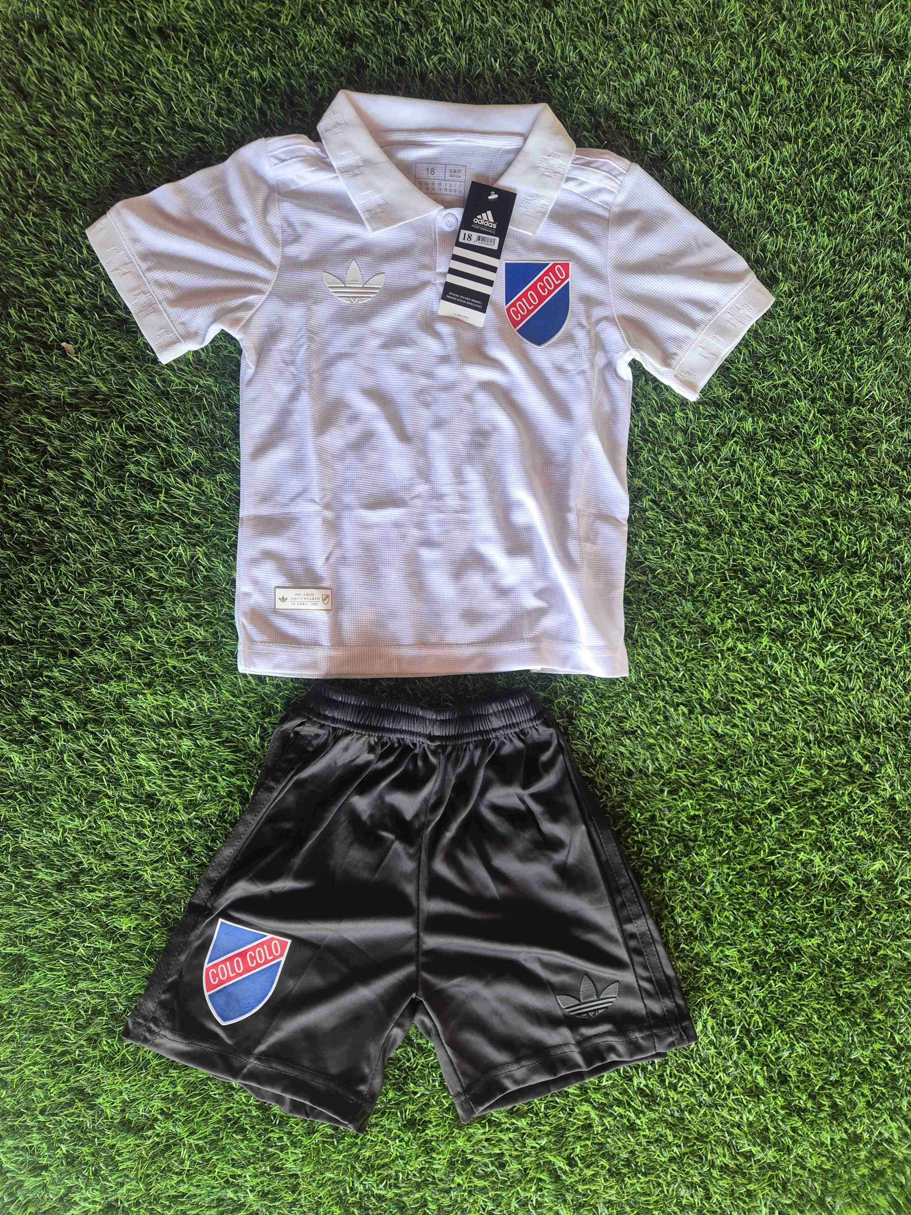 Conjunto infantil Talla 4 . Camiseta blanca y short negro del Colo-Colo Centenario . Perfecto para pequeños fanáticos. Nuevo con etiquetas.