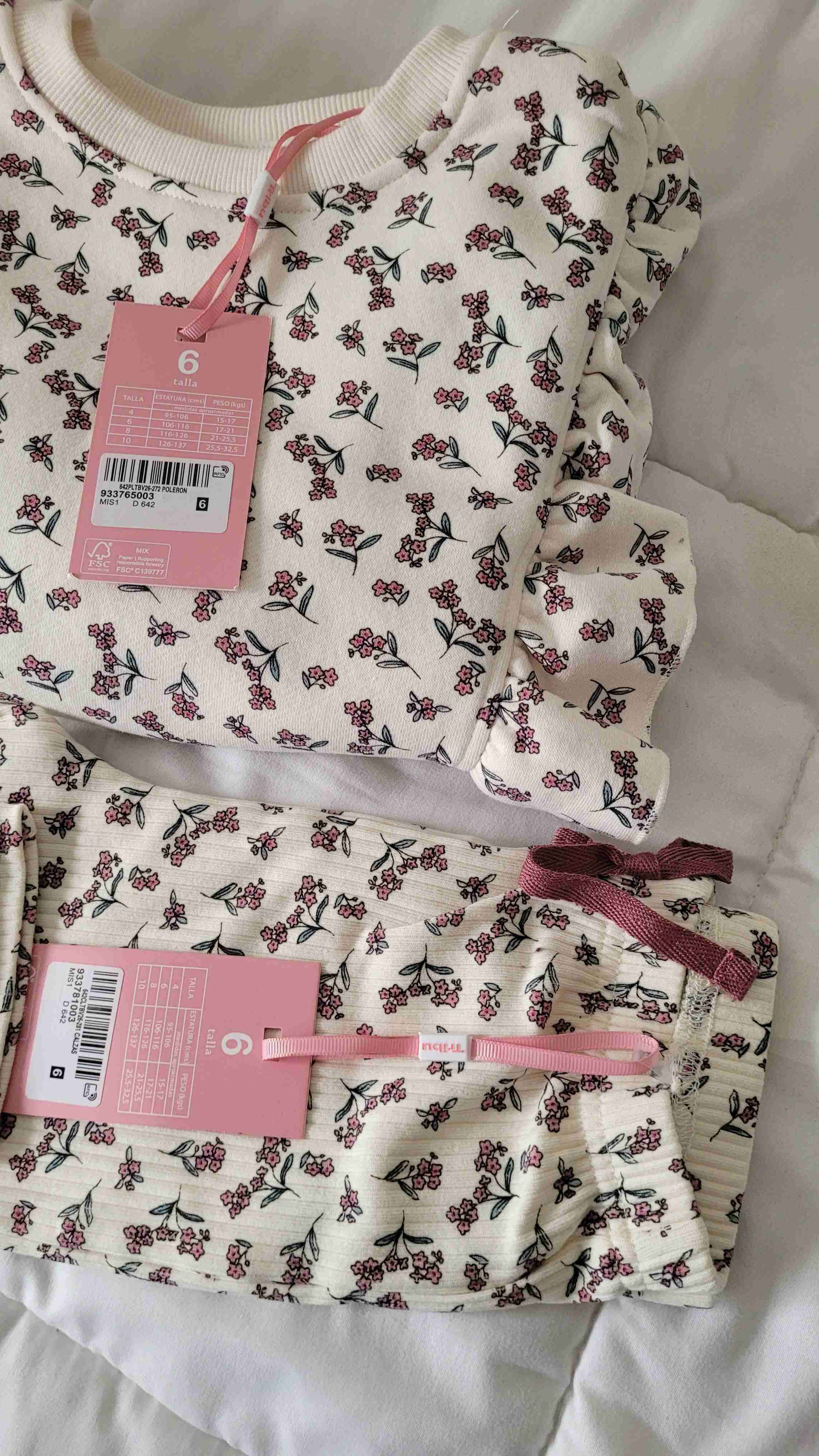 Conjunto niña , poleron vuelos + calza rib talla 6 , nuevo.