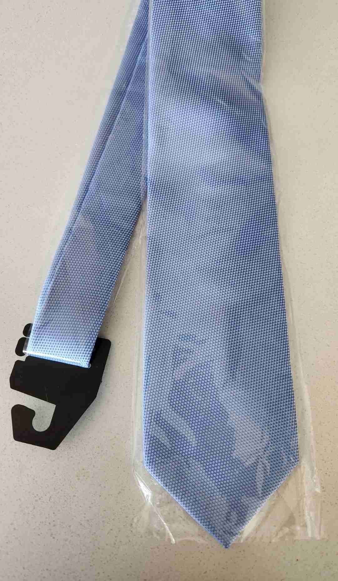 Elegante corbata celeste nueva, ideal para ocasiones formales. Viene en su empaque original con etiqueta.