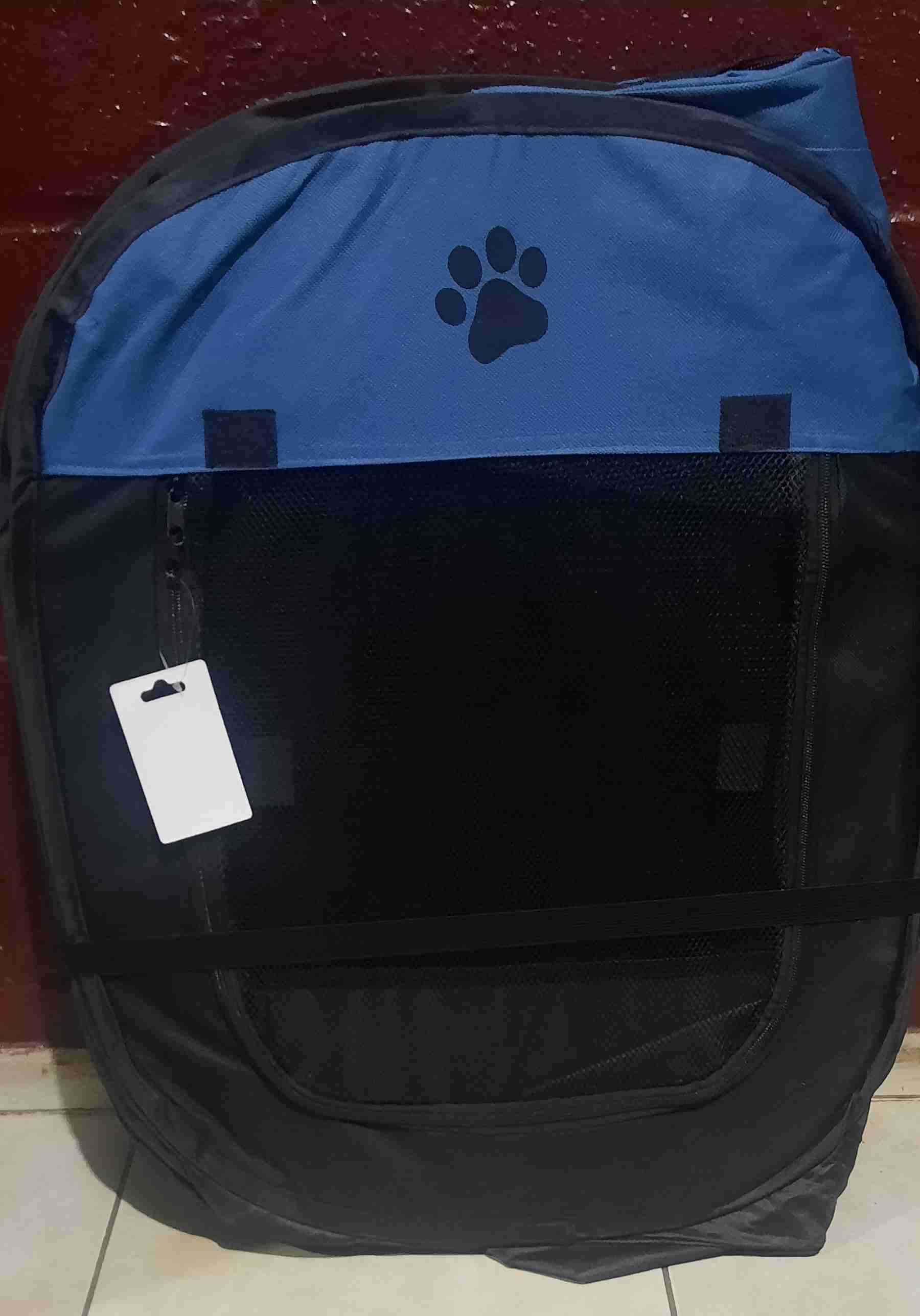 Corral de tela azul y negra pegable, ideal para darle un espacio seguro y cómodo a tus mascotas, pequeñas o medianas. (Esta nuevo, lo compramos y no se ocupó.) Sus medidas abierto son: Largo: 1.14m Ancho: 1.14m Altura: 60 cm Fabricado con tela oxford.Tiene cierre.