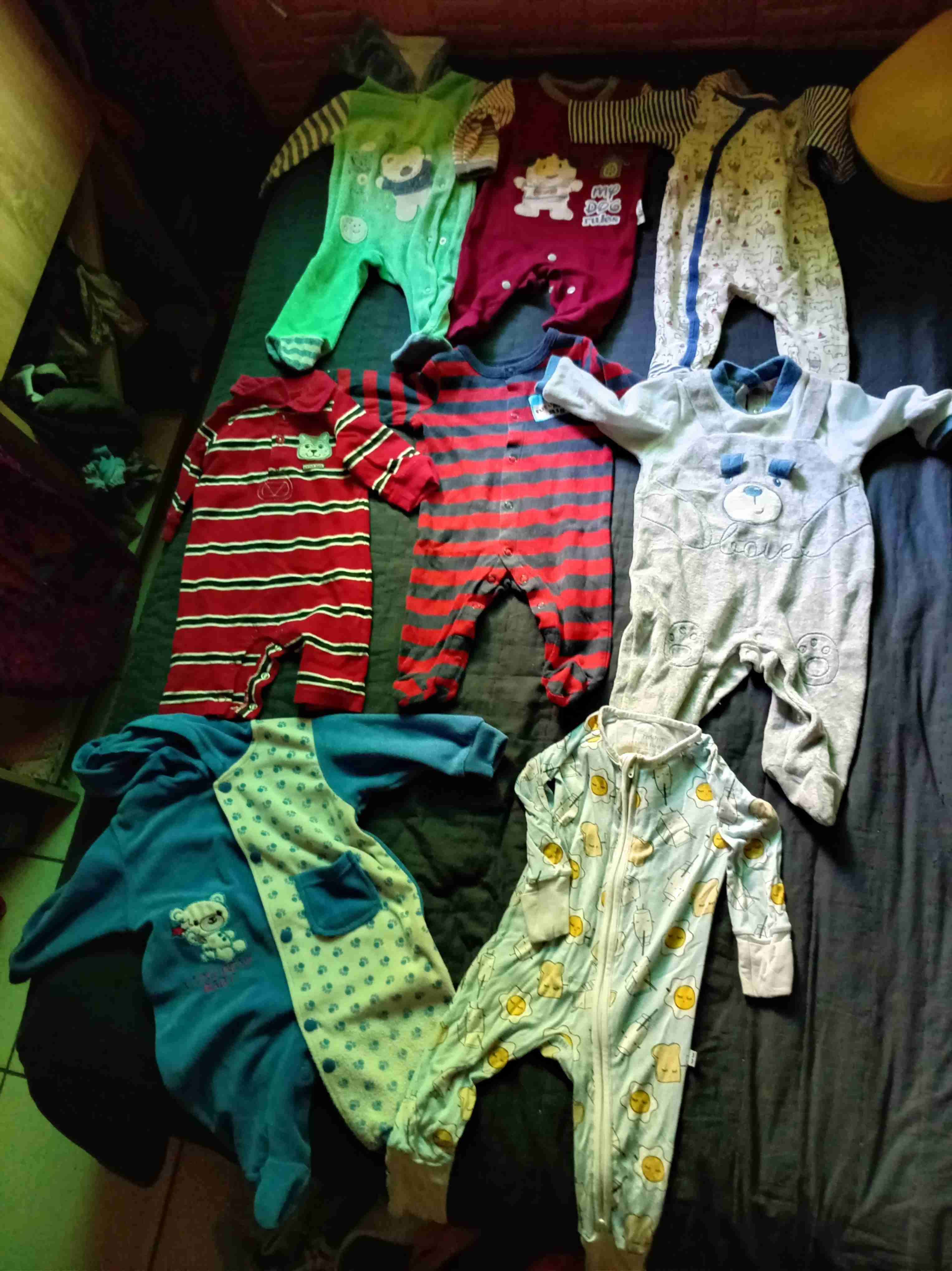 Pijamas de bebé en varios colores y diseños tiernos. En buen estado, ideales para las noches frescas.