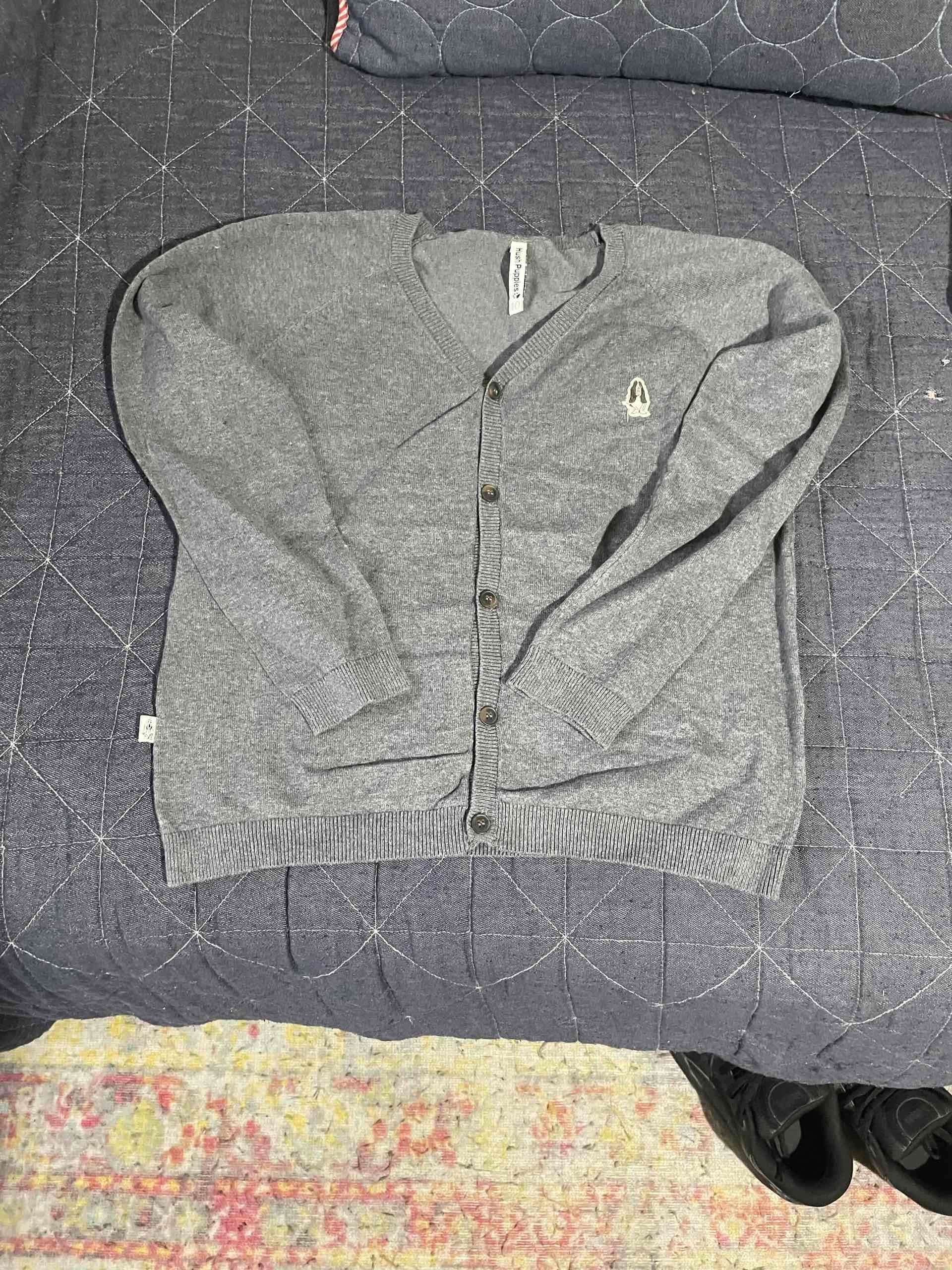 Saco estilo cardigan en color gris, perfecto para clima fresco. En buen estado con leve uso visible. Talla 10 de niño