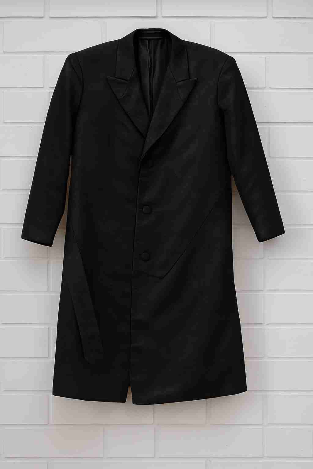 Abrigo largo negro de estilo clásico, ideal para climas fríos. En buen estado, perfecto para ocasiones formales.