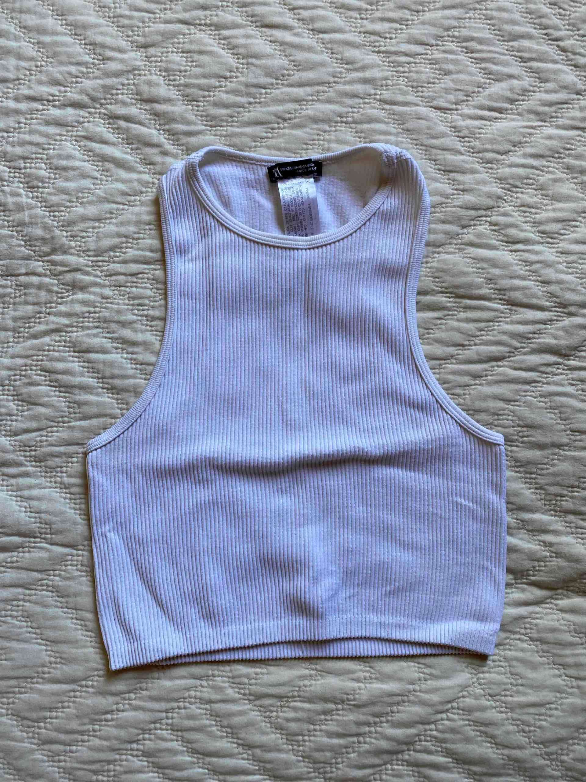 Crop top blanco en buen estado, ideal para verano. Ajustado y cómodo. Xs-S