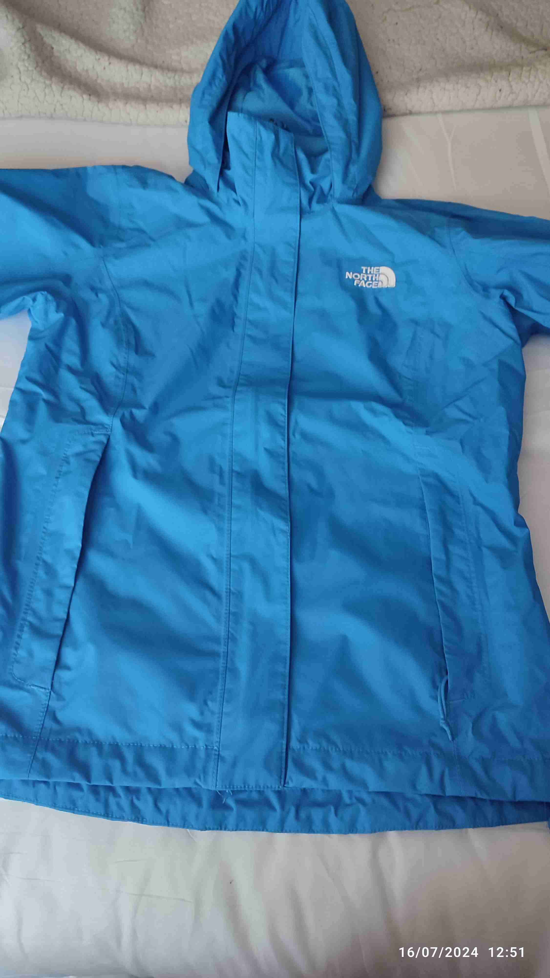 Chaqueta azul con capucha, ideal para días de lluvia. Buen estado.impermeable, cortaviento y transpirable, ideales para montaña y uso urbano. Muy poco uso Mujer!