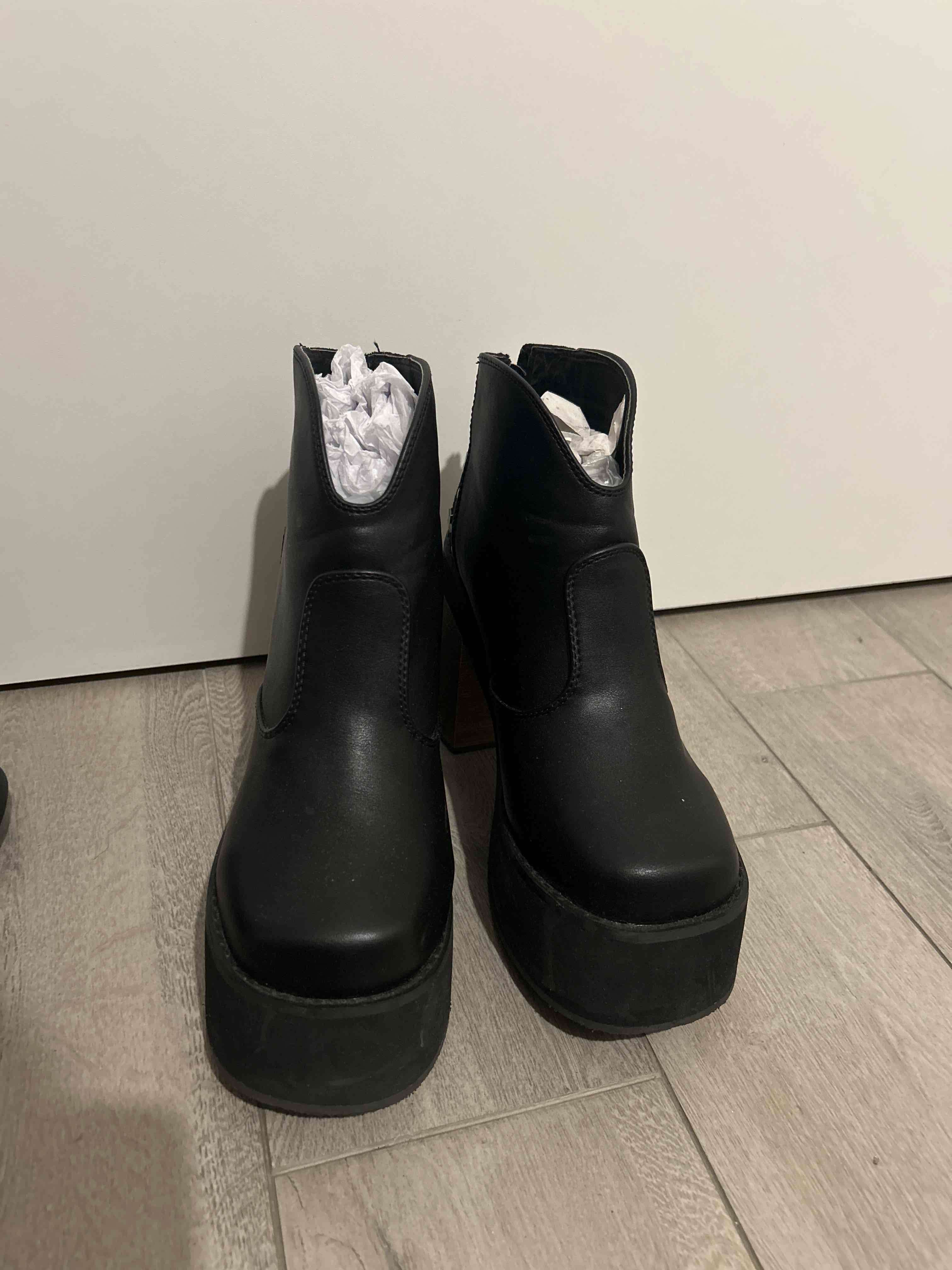 Elegantes botines de cuero negro, perfectos para ocasiones formales o casuales. En buen estado general, con pequeñas señales de uso.