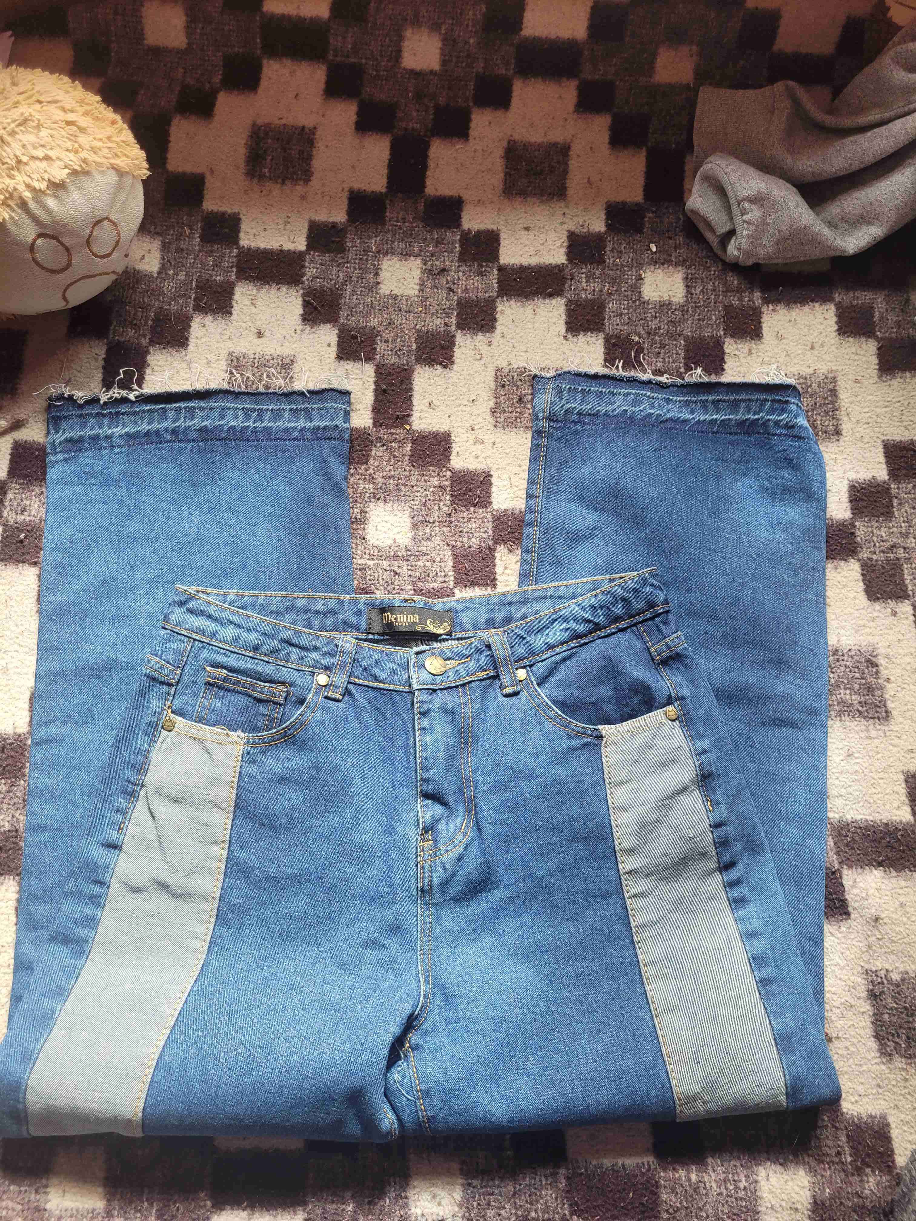 Jeans azul con franjas claras a los costados. En buen estado, perfecto para un estilo casual diario.
