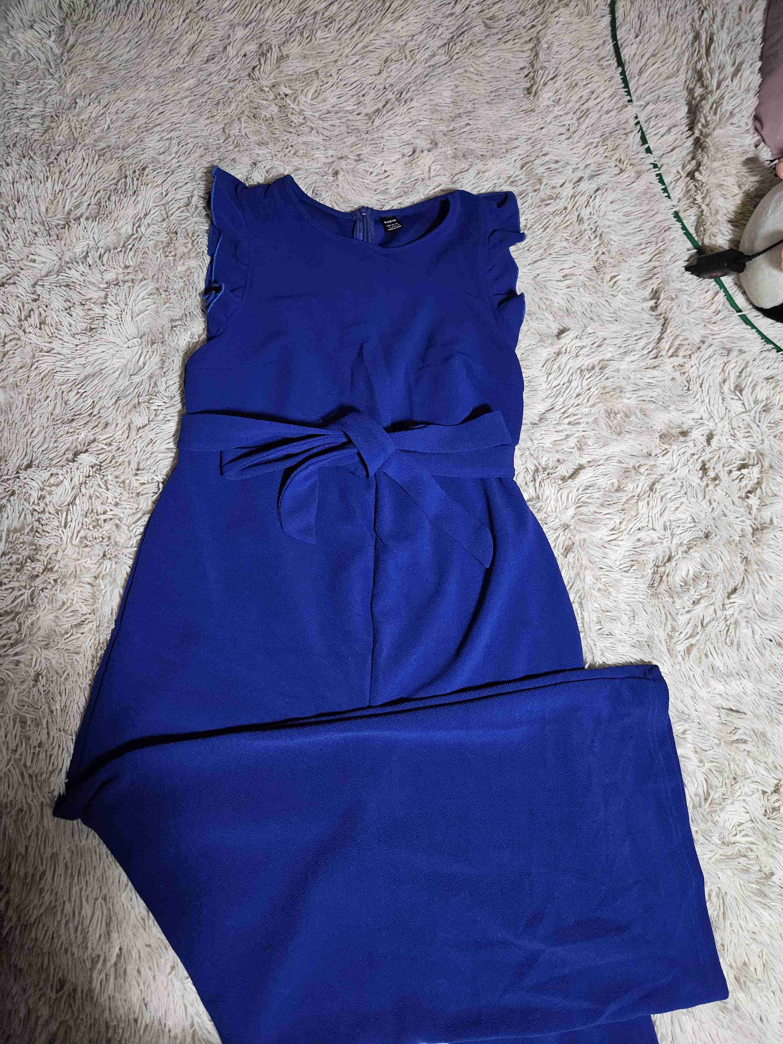 Enterito elegante azul, ideal para ocasiones formales. Incluye cinturón a juego. Sin detalles, muy poco uso.