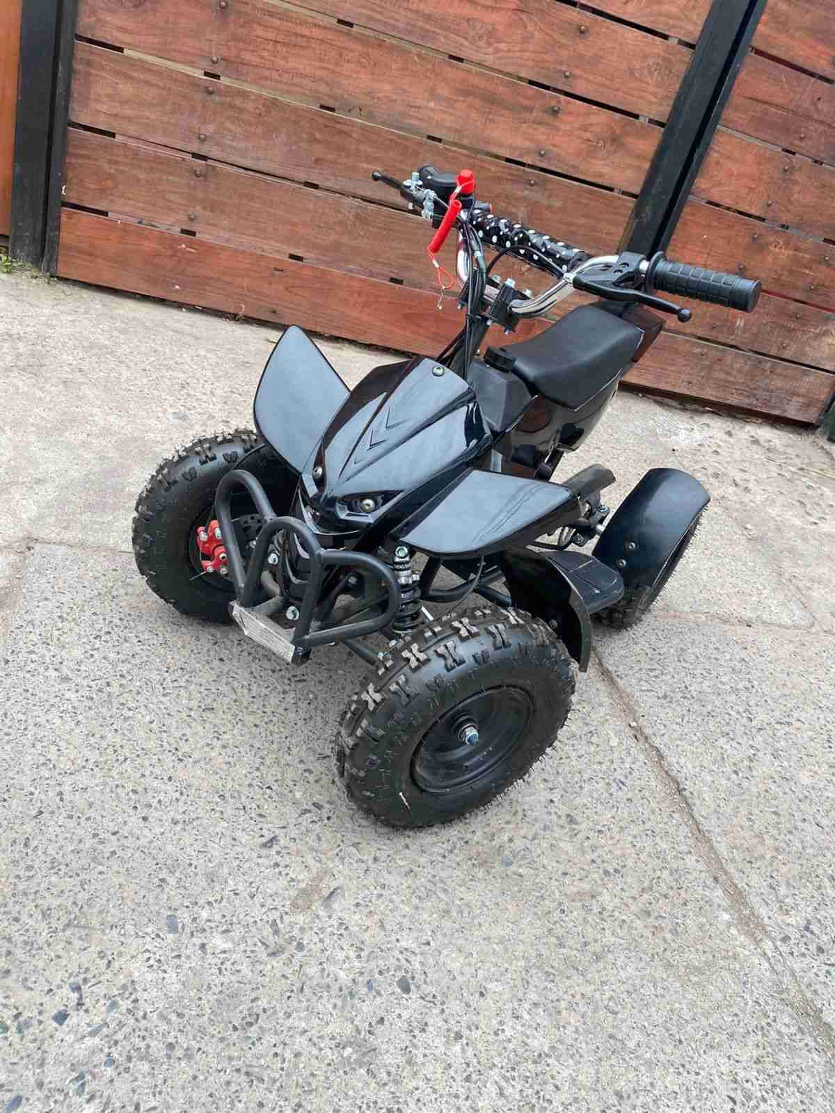 Cuatrimoto eléctrica en buen estado, ideal para aventuras al aire libre. Diseño robusto y compacto.