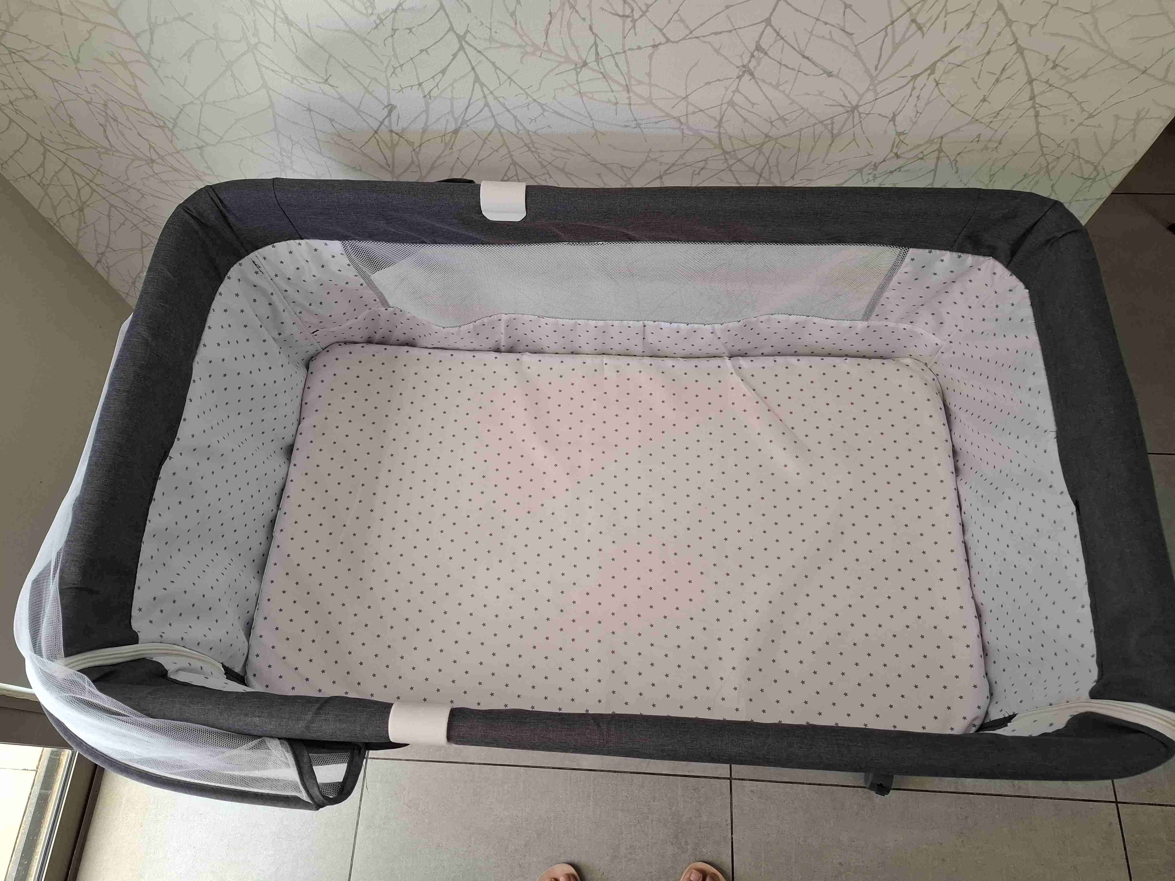 Cuna colecho opaline para bebé en tono gris, con diseño moderno. Ideal para el descanso del bebé, en buen estado.