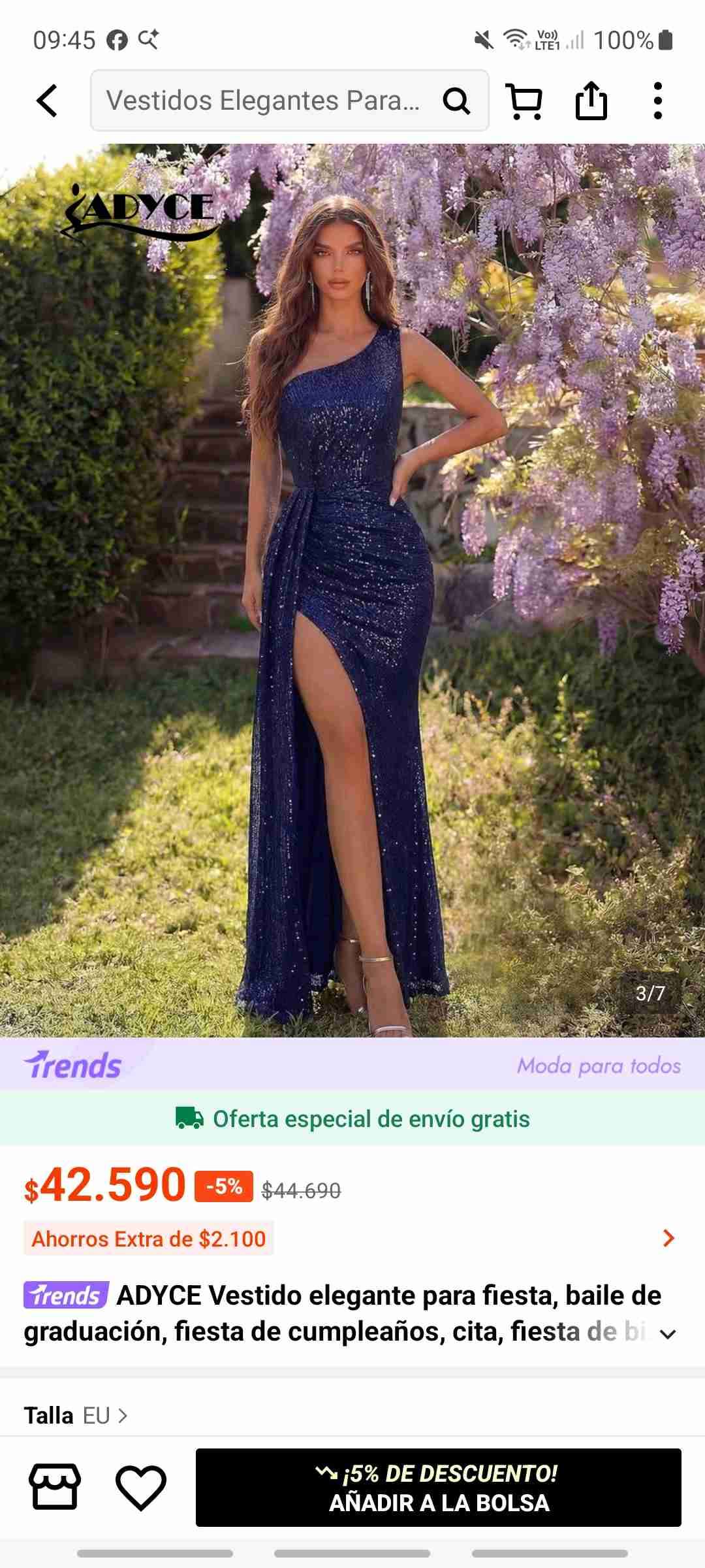 Vestido elegante azul con brillo