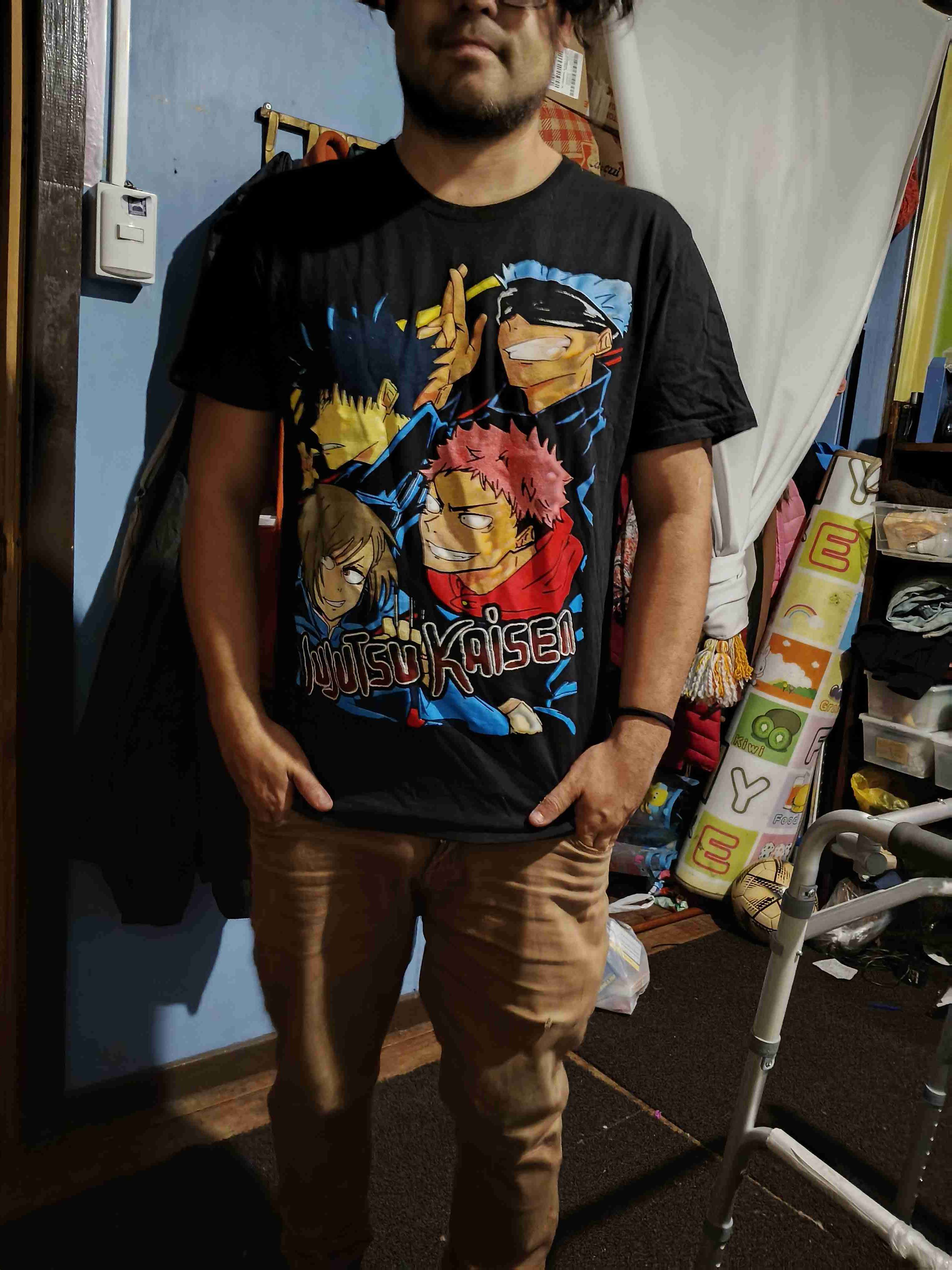 Polera negra de Jujutsu Kaisen, ideal para fans del anime. En buen estado, con diseño colorido y llamativo.polera nueva