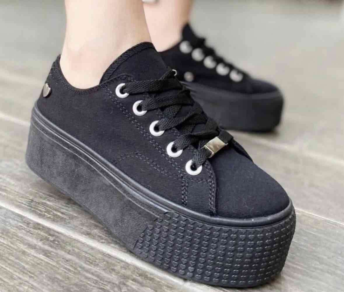 Elegantes zapatillas negras con plataforma alta, perfectas para un look casual. En buen estado, con suela resistente.