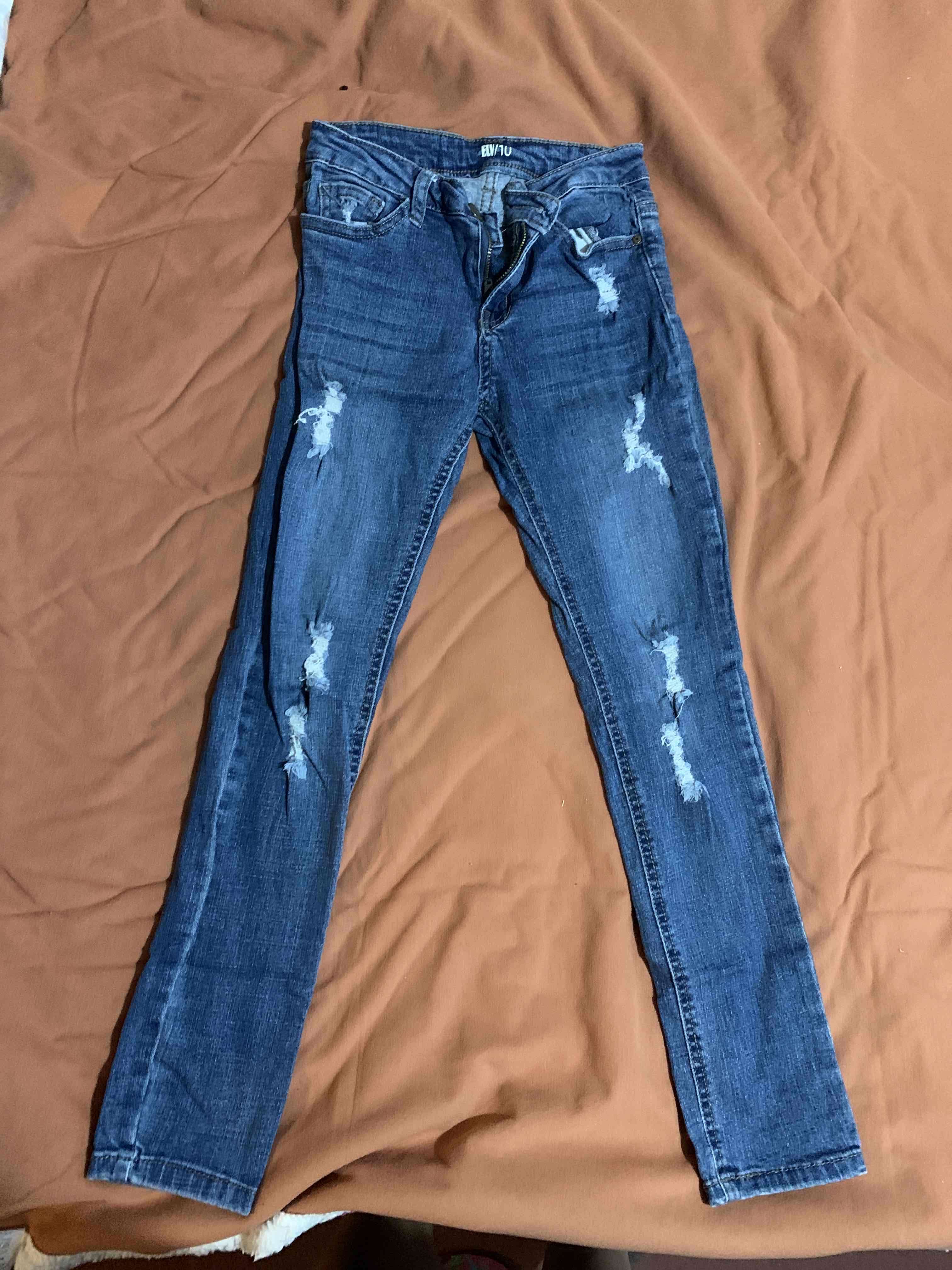 Jeans azul con diseño desteñido para un look casual. En buen estado, perfectos para uso diario. Talla 10