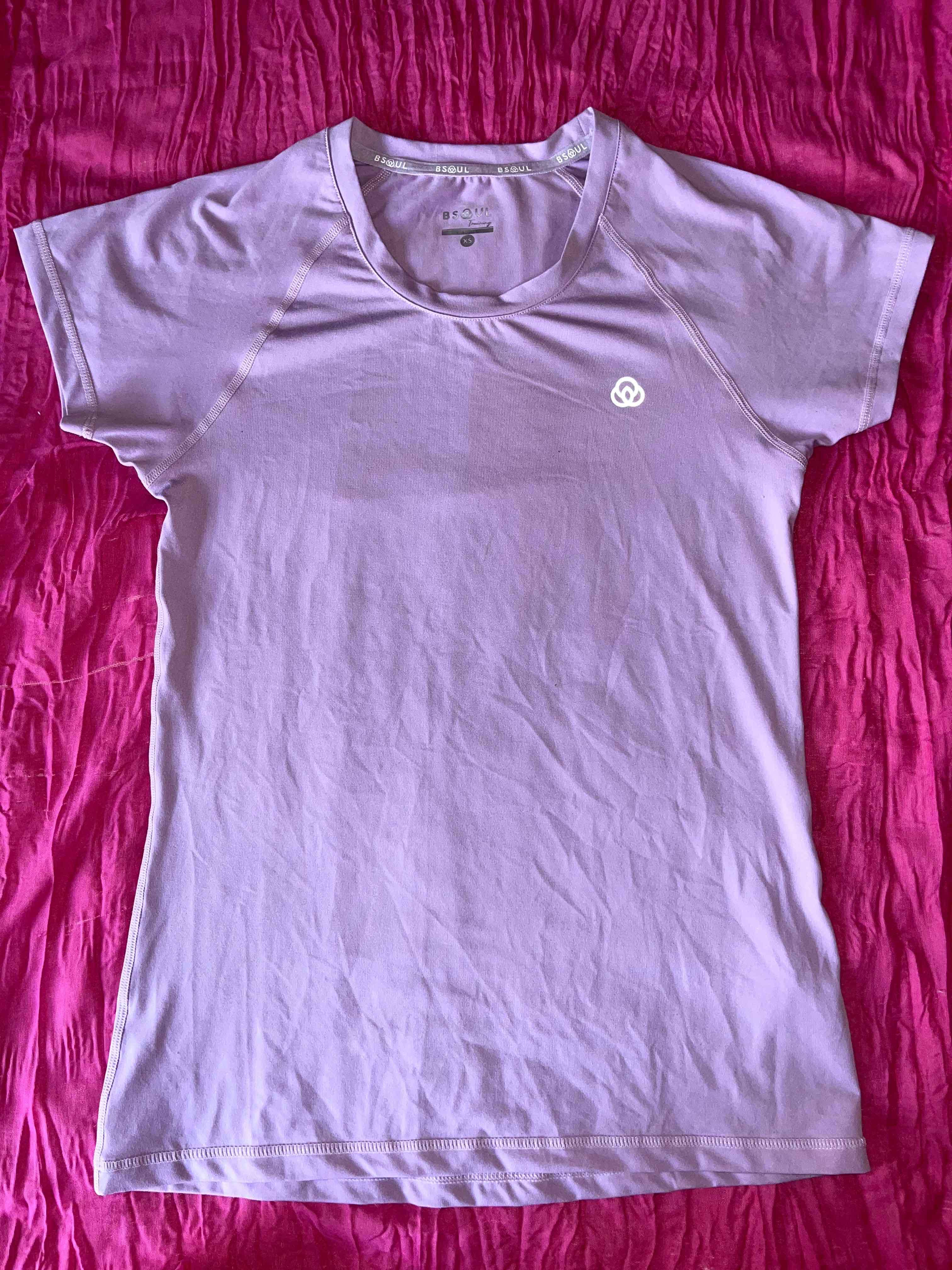 Polera deportiva morada para mujer, ideal para actividad física. Buen estado general.