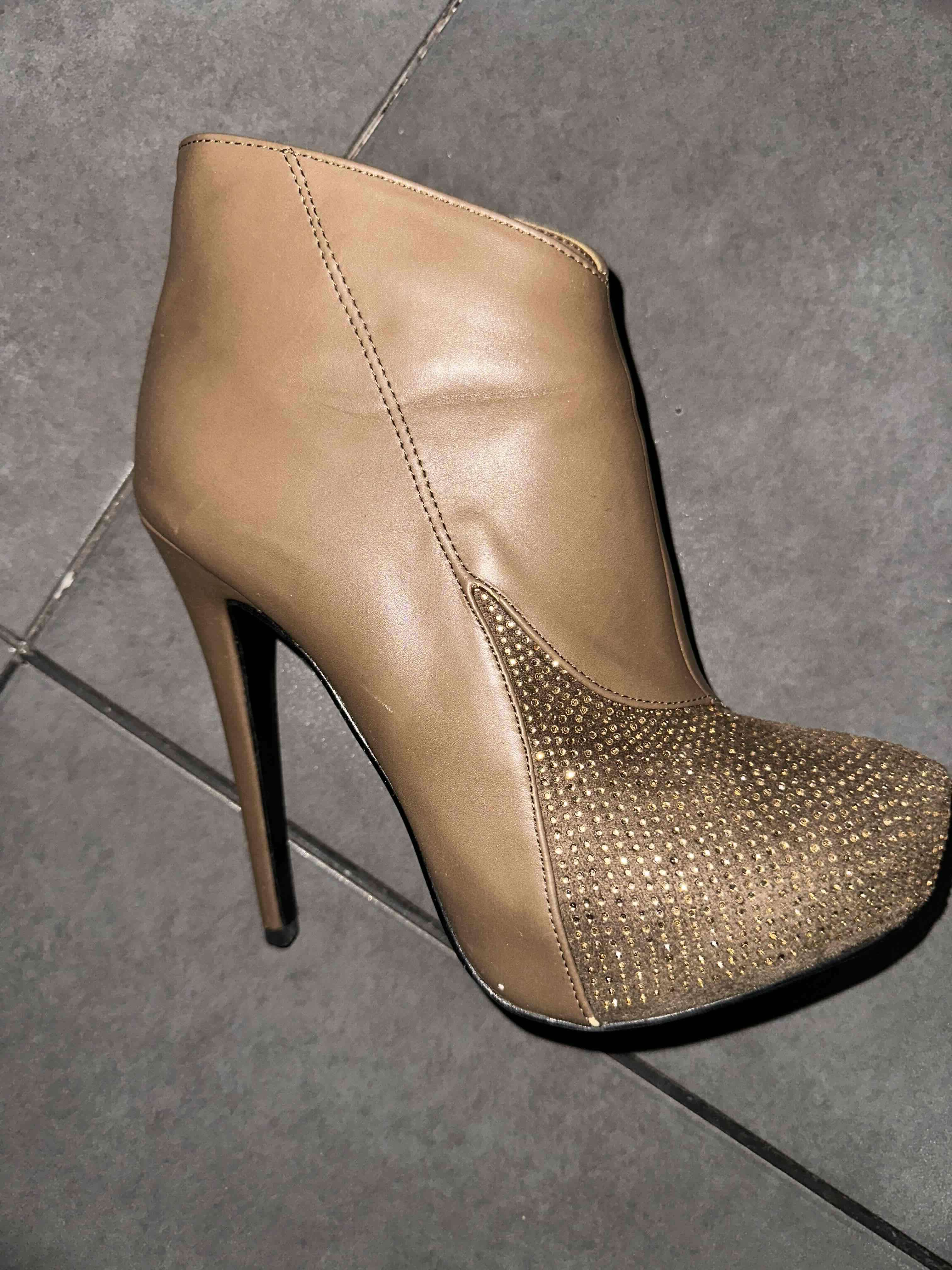 Elegantes botines color camel con brillantes en la punta. En buen estado, perfectos para ocasiones especiales. Talla 38 usados solo una vez