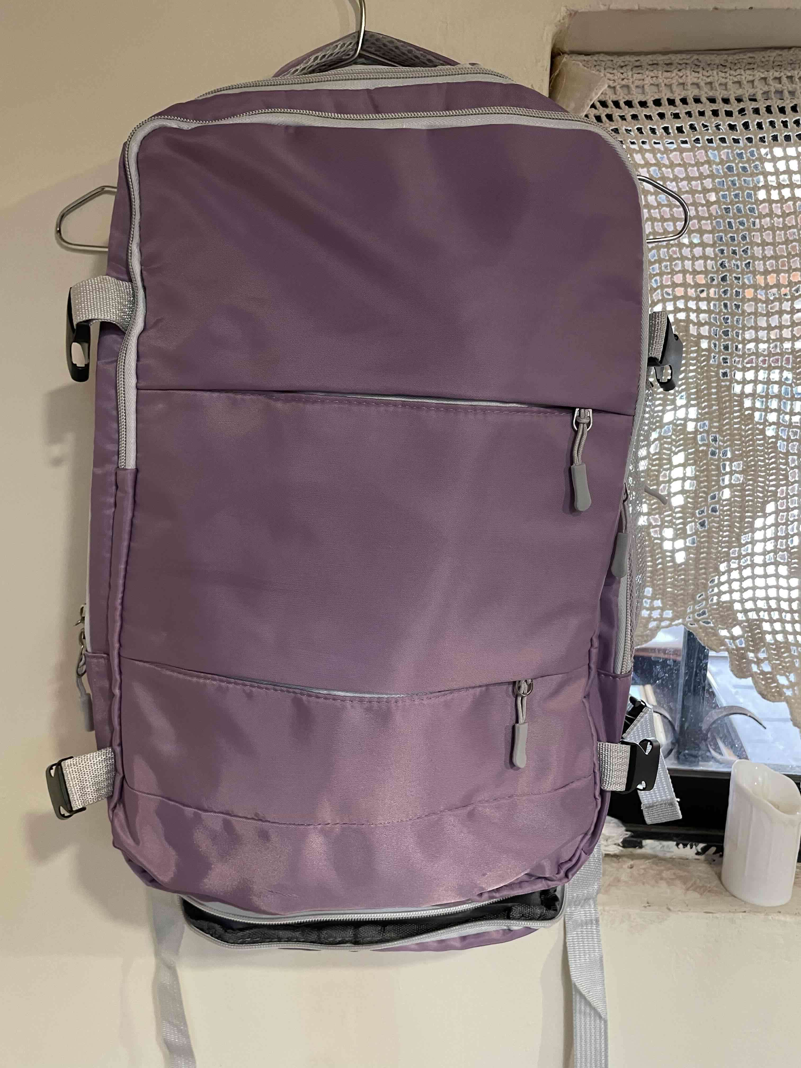 Mochila de color morado, ideal para uso diario o viaje . Tiene múltiples bolsillos para mejor organización.