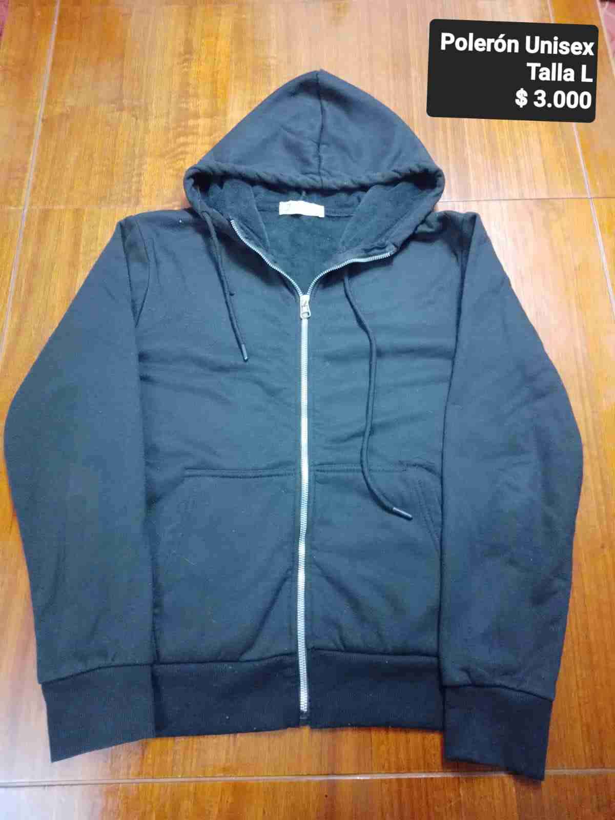 Polerón unisex en buen estado, color negro, ideal para días frescos. Talla L.
