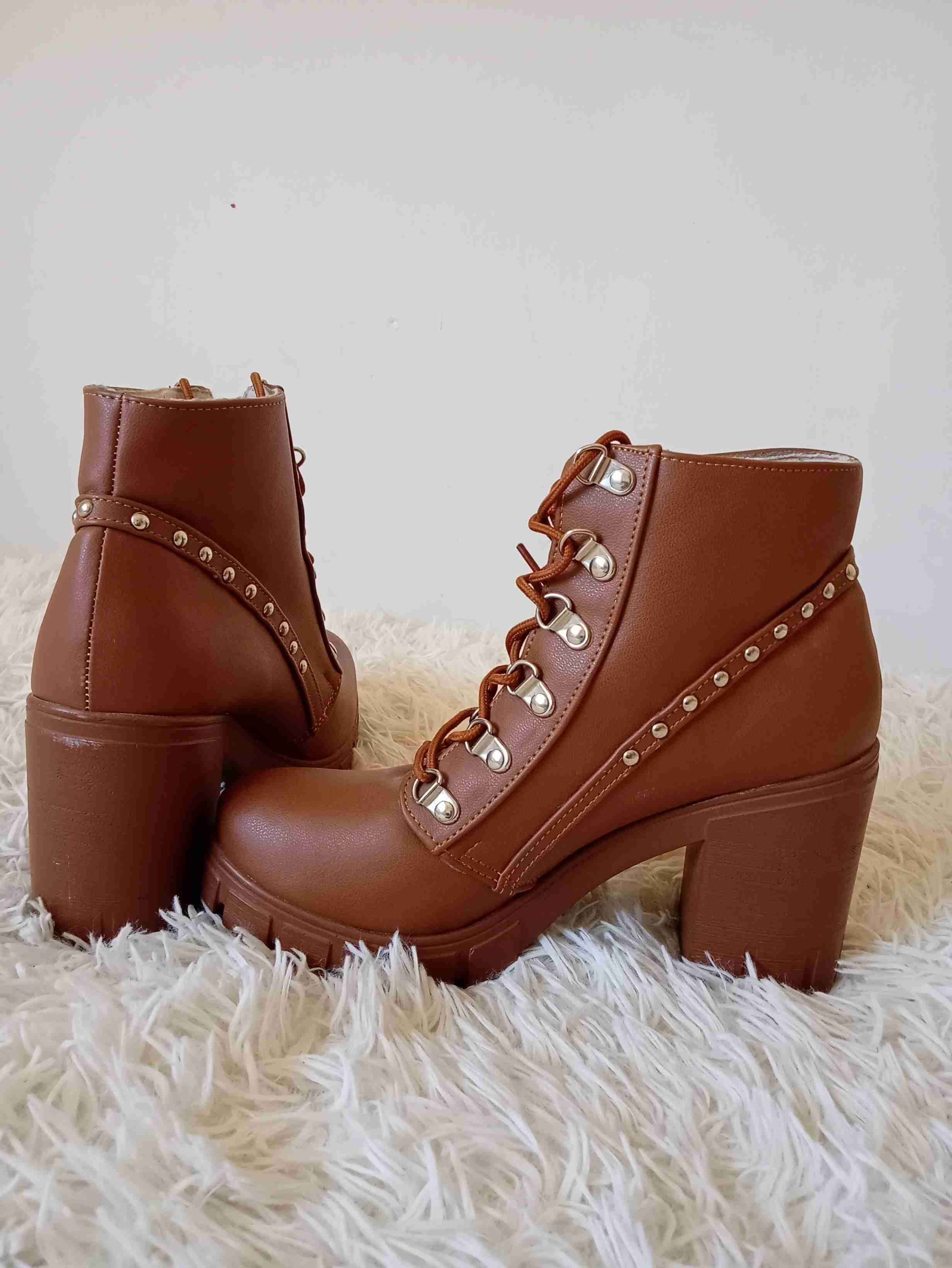 Botines de taco alto con detalle de tachas, ideales para el invierno. En buen estado, usados levemente.