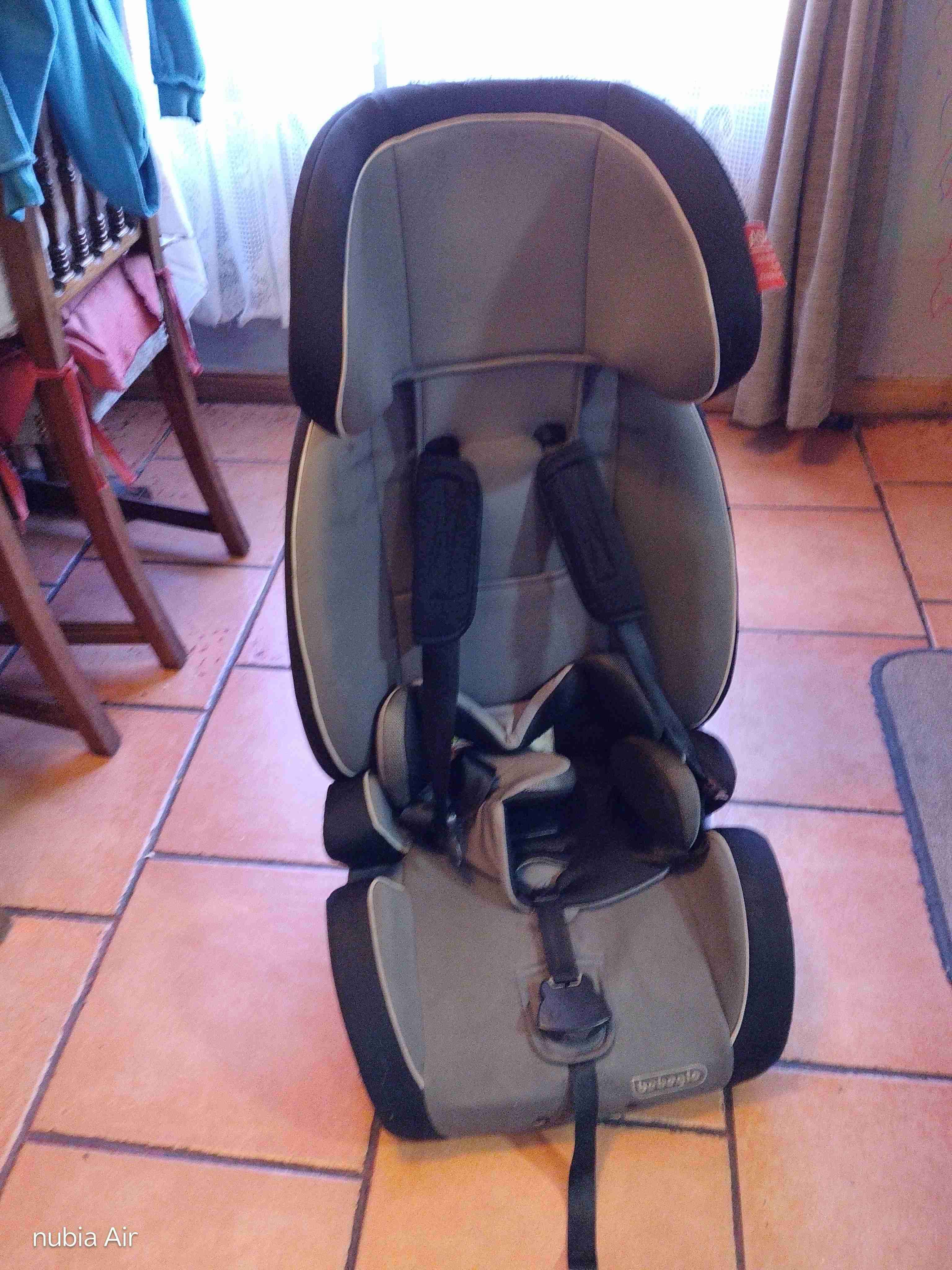 Silla de auto en buen estado, color gris, ideal para la seguridad de los niños en el auto. Uso cuidado y cómodo.